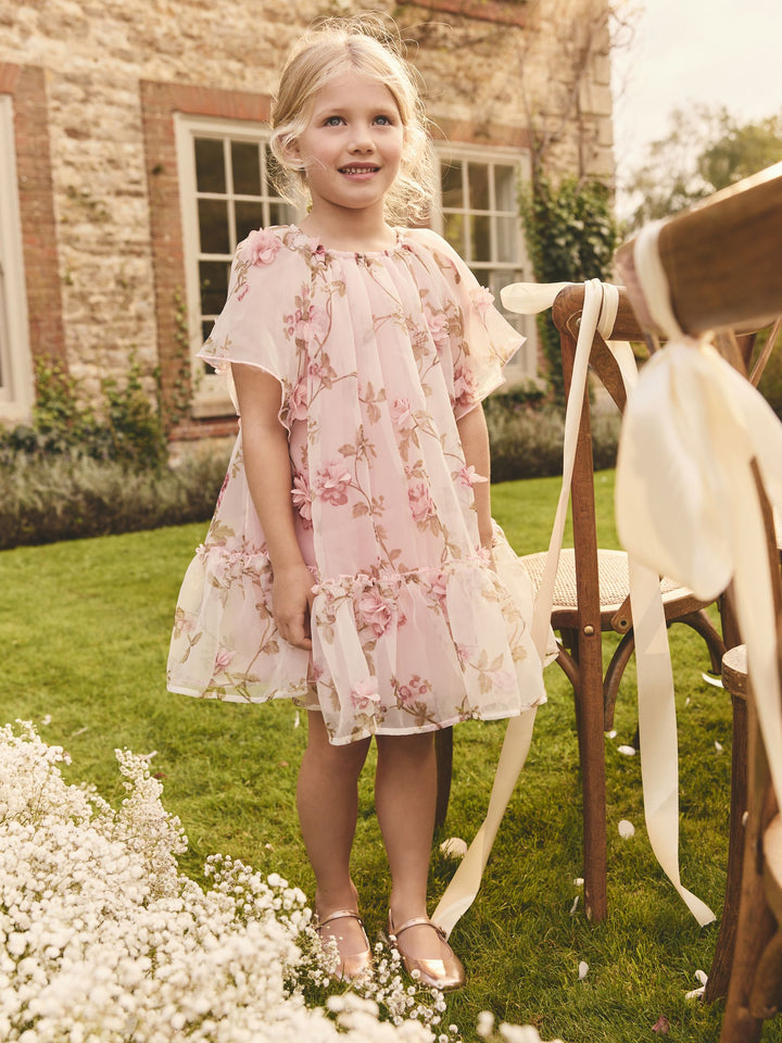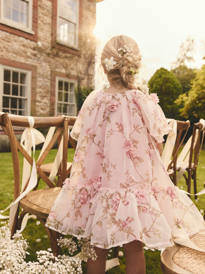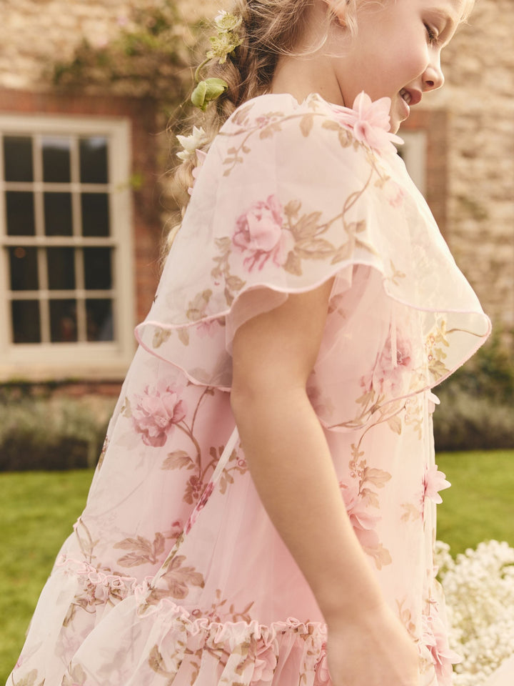 Pink 3D Floral Organza Party Dress (3-16yrs)