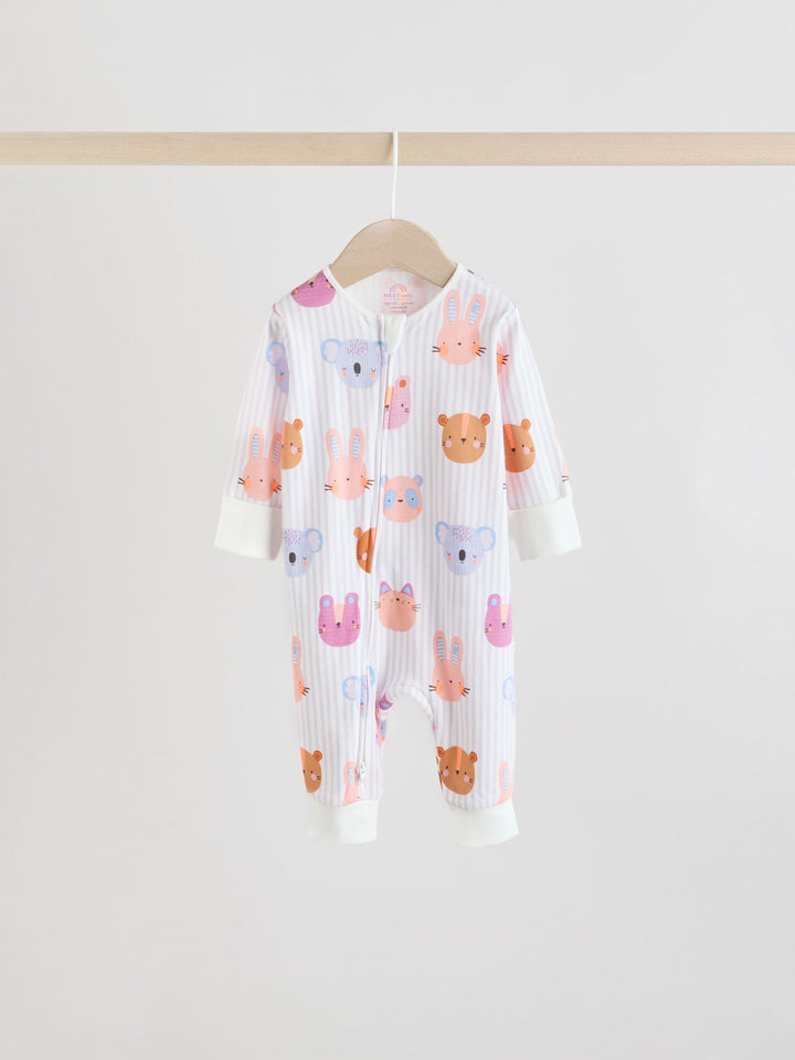 Pink Animal Character Two Way Zip Baby Sleepsuits 5 Pack (0mths-3yrs)