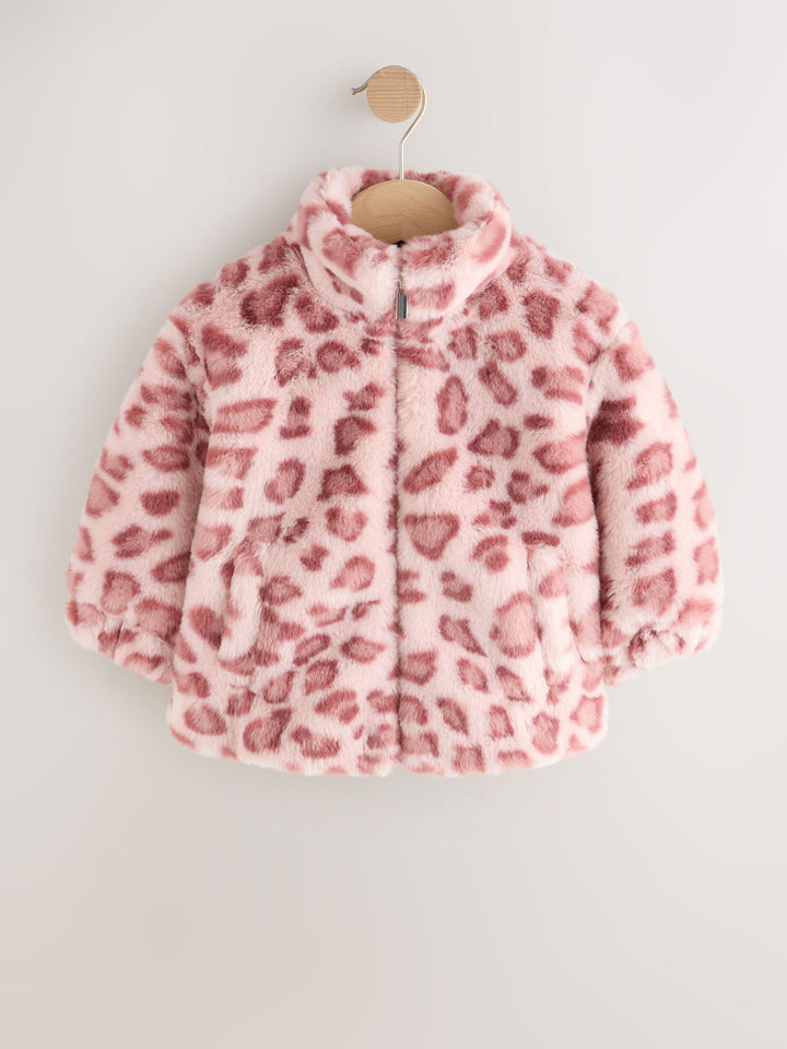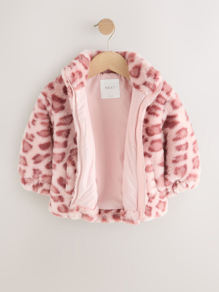 Pink Animal Faux Fur Bomber Jacket (12mths-7yrs)