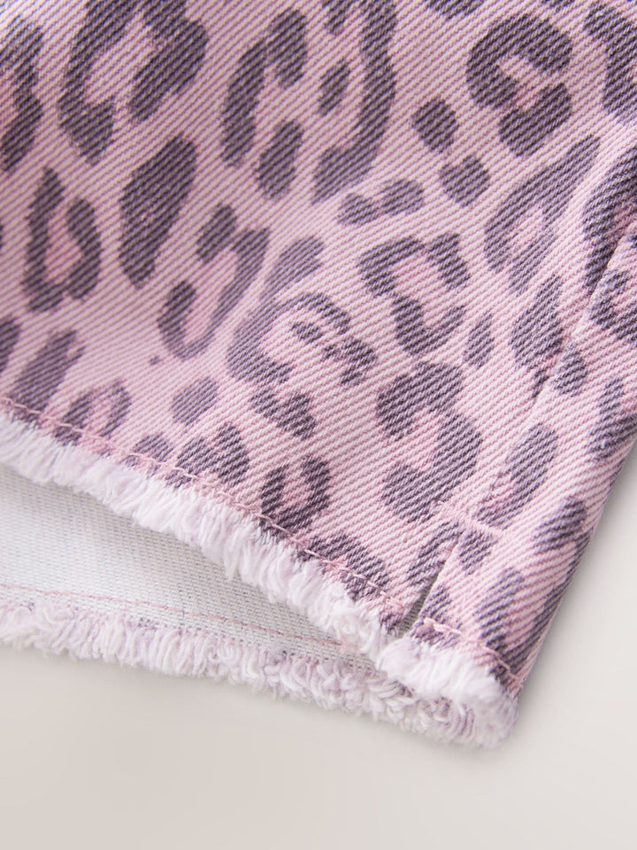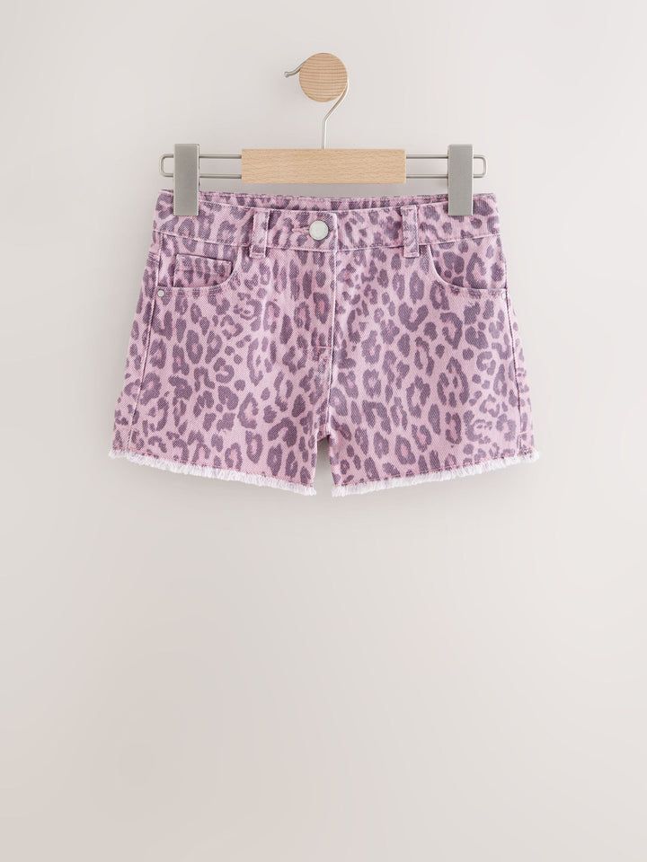 Pink Animal Regular Length Frayed Edge Denim Shorts (3-16yrs)