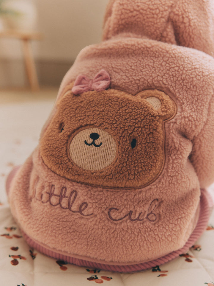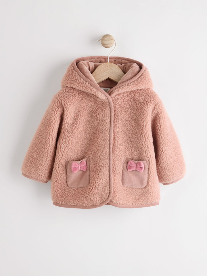 Wrap them up in cosy warmth with this charming borg hooded caramel brown bear jacket. Made from supersoft borg fleece, with a popper front fastening and a stitched trim, finished with a set-in hood and 3D ears for added cuteness. Regular fit Borg fleece fabric Popper front fastening Stitched trim Set-in hood 3D ears Machine washable. Main 100% Recycled polyester. Hood Lining 100% Recycled polyester. Trim 100% Cotton. Country of Origin: China Warning: Keep away from fire and flames.