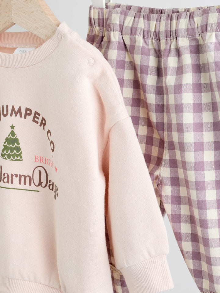 Pink Baby Christmas Jumpers and Trousers 2 Piece Set (0mths-2yrs)