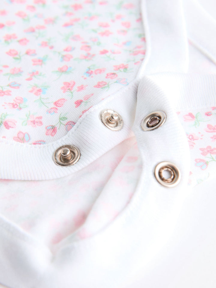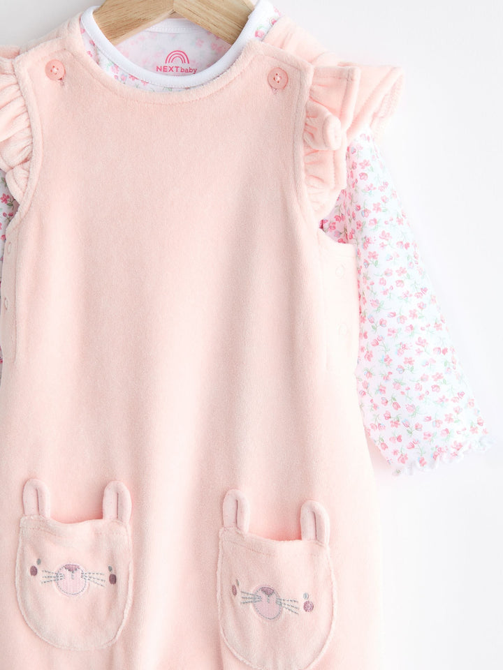 Made from a soft and comfortable cotton-rich blend fabric, this adorable 2-piece set features pink velour dungarees with ruffle detailing at the shoulders and bunny pocket detailing, alongside a long sleeve bodysuit in a floral design. 2-piece set Cotton-blend fabric Velour dungarees Ruffle shoulders Bunny pockets Long sleeve bodysuit Floral print Machine washable. Bodysuit 92% Cotton, 8% Elastane. Dungaree Main 80% Cotton, 20% Polyester. Lining 100% Cotton. Country of Origin: India Warning: Keep away from fire and flames.