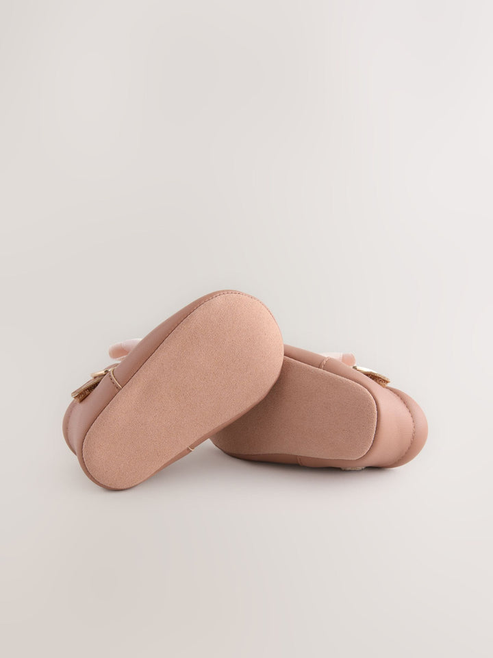 Pink Baby T Bar Bow Shoes (0-18mths)
