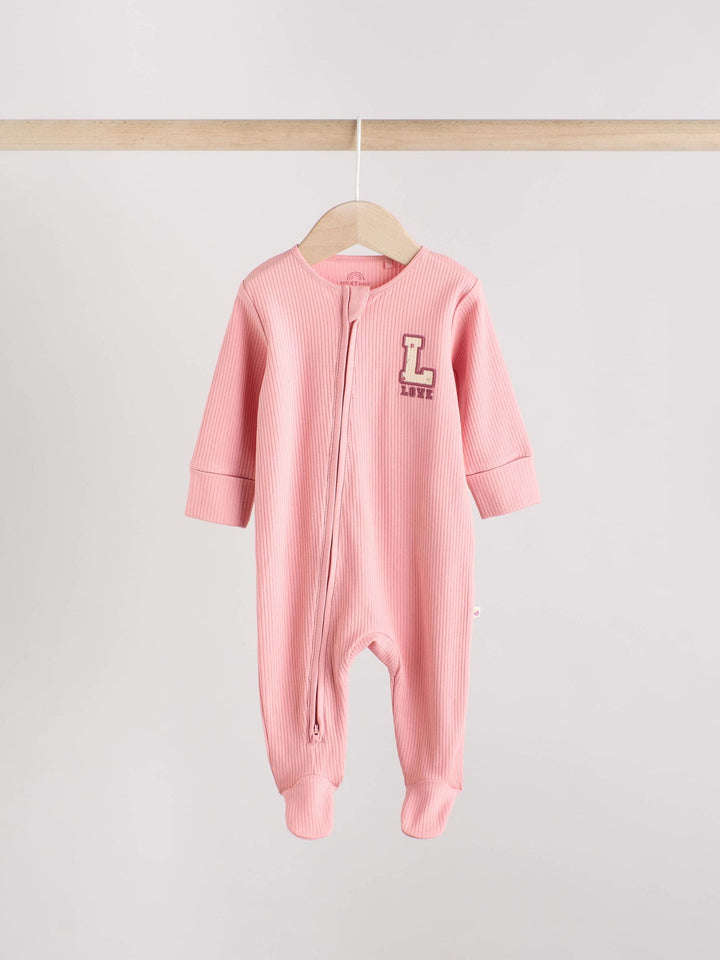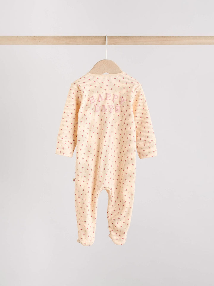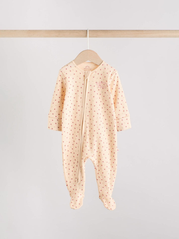 Pink Baby Two Way Zip Floral Print Sleepsuits 3 Pack (0mths-3yrs)