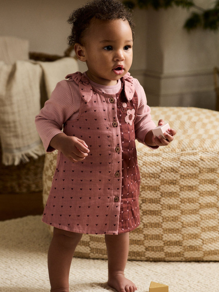 Pink / Berry Heart Baby Pinny Dress and Long Sleeve Bodysuit 2 Piece Set (0mths-2yrs)