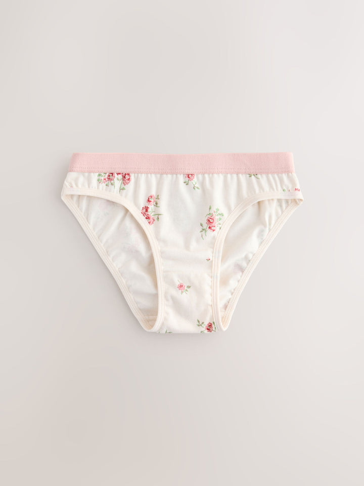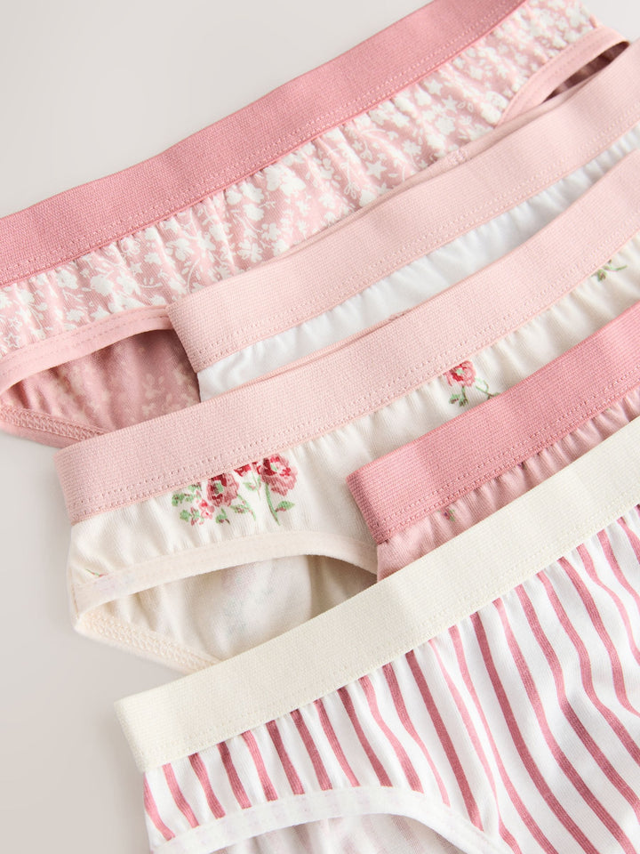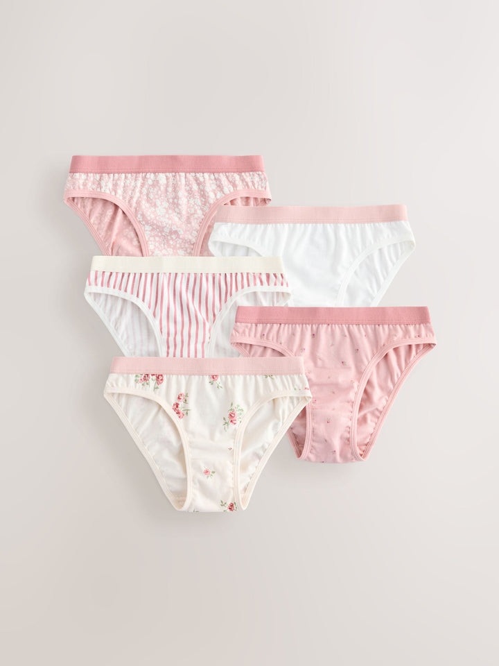 Stock up on the staples with this pretty pink 5 pack of briefs. Made in a soft cotton rich fabric with an elasticated waistband and in a range of cute designs. 5 pack Elasticated waistband Range of prints 5 x Briefs 95% Cotton, 5% LYCRA® XTRA LIFE™ elastane. Country of Origin: Bangladesh LYCRA® XTRA LIFE™ fibre keeps your underwear looking new for longer, with lasting comfort and fit. This innovative stretch fabric is lightweight and breathable and will hold its shape wear after wear, wash after wash.