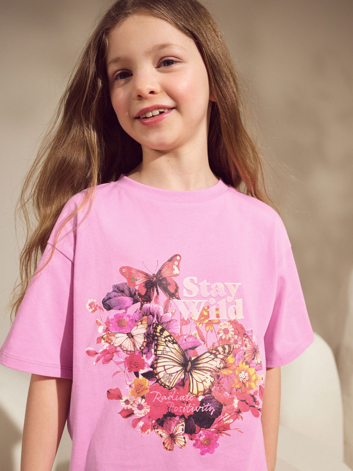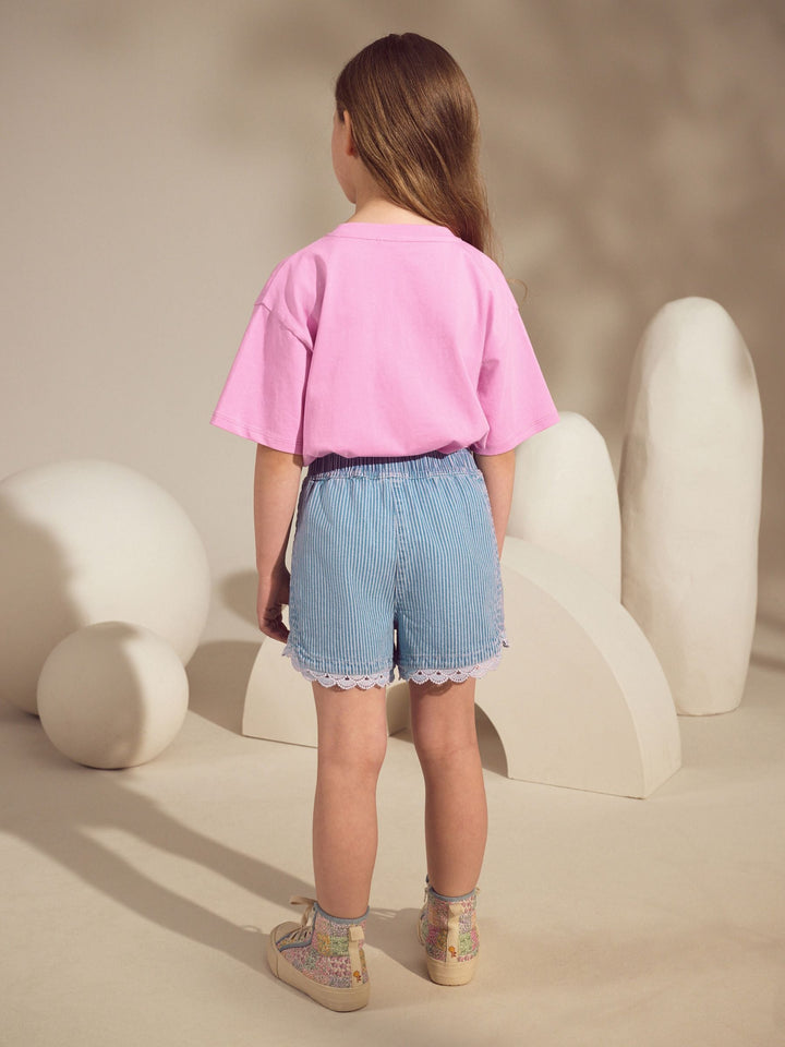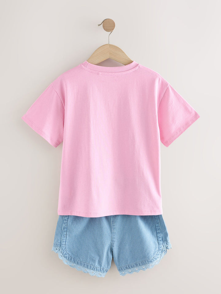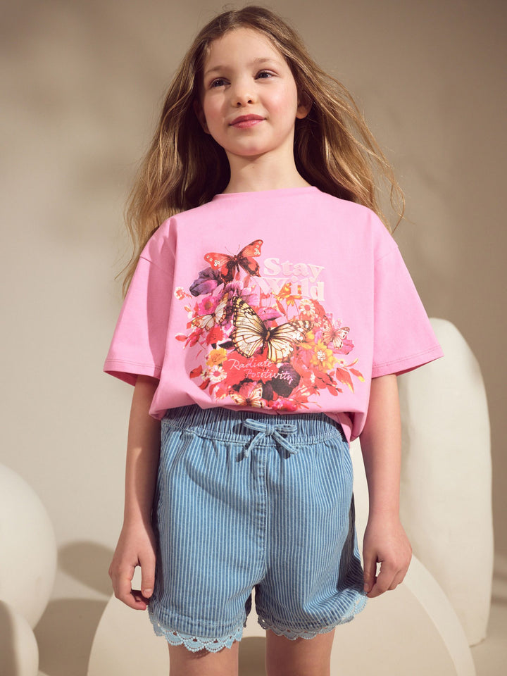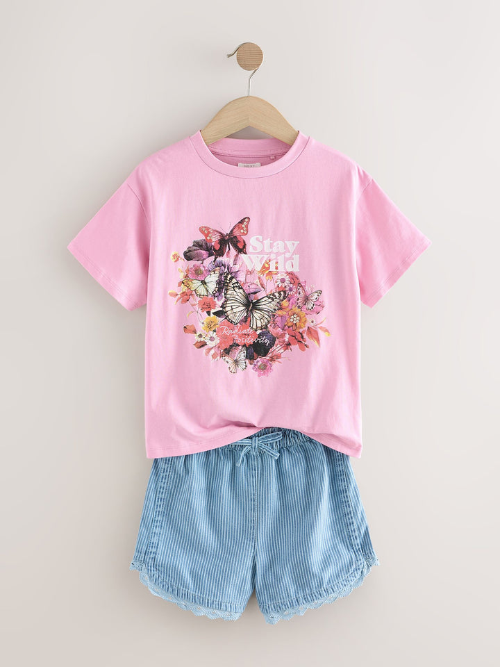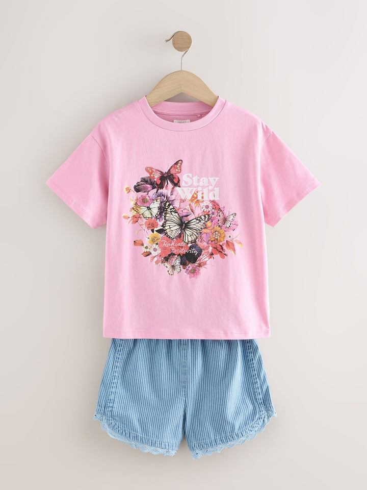 Pink/Blue Butterfly 100% Cotton T-Shirt And Denim Short Set (3-16yrs)