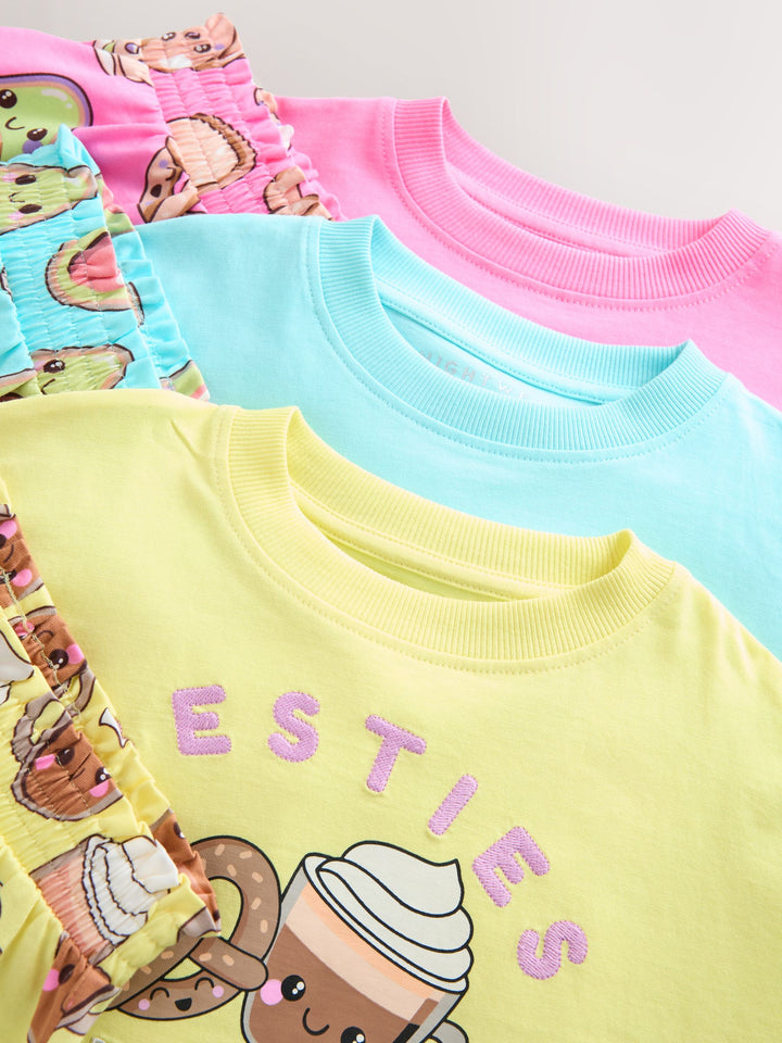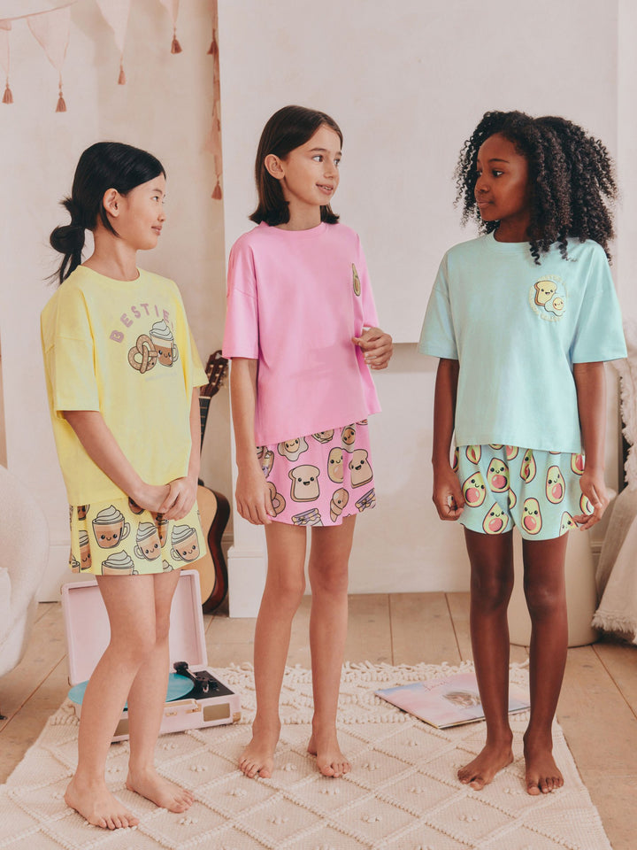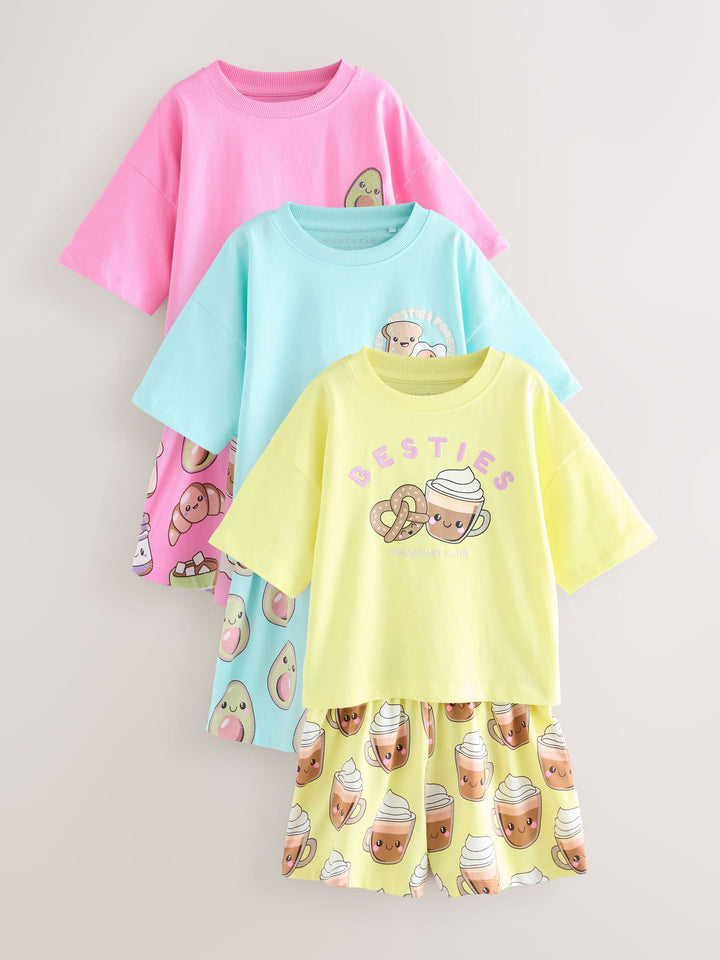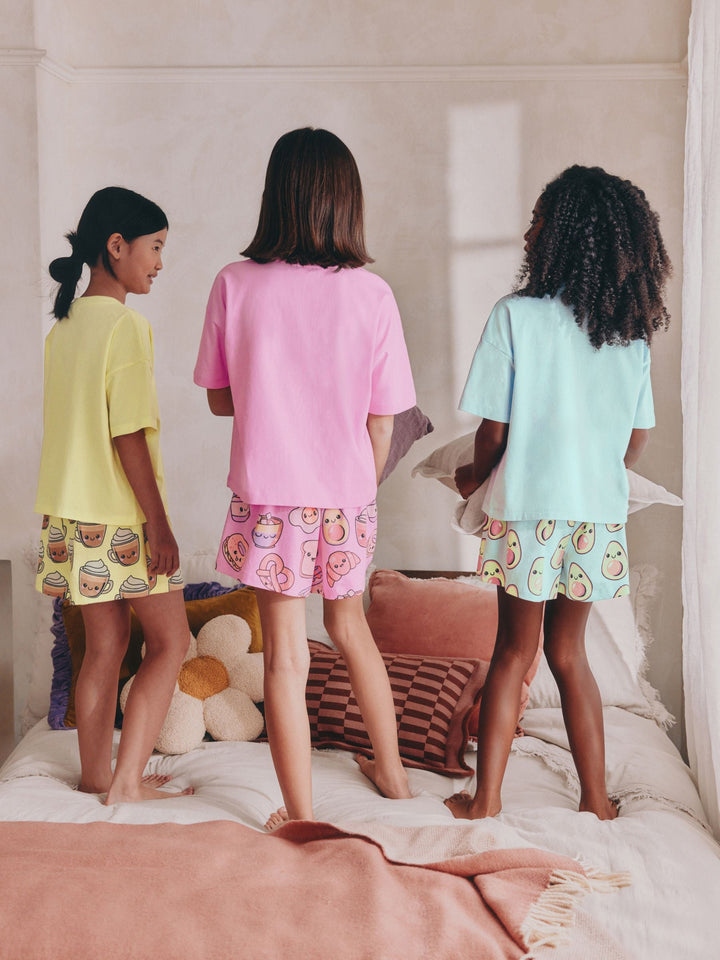 Our kids pyjama multipack offers comfort and cosiness whilst they sleep. With 3 short sleeve tops and elasticated shorts, allowing for multiple mix-and-match combinations, each piece is crafted from soft cotton. With a variety of prints and designs, this multipack ensures they're stocked up on nightwear essentials. Multipack of 3 sets Short sleeve tops Elasticated shorts 100% cotton Machine washable. 3 x Pyjama Top and 3 x Pyjama Bottom 100% Cotton. Country of Origin: Bangladesh Warning: Keep away from fire and flames.
