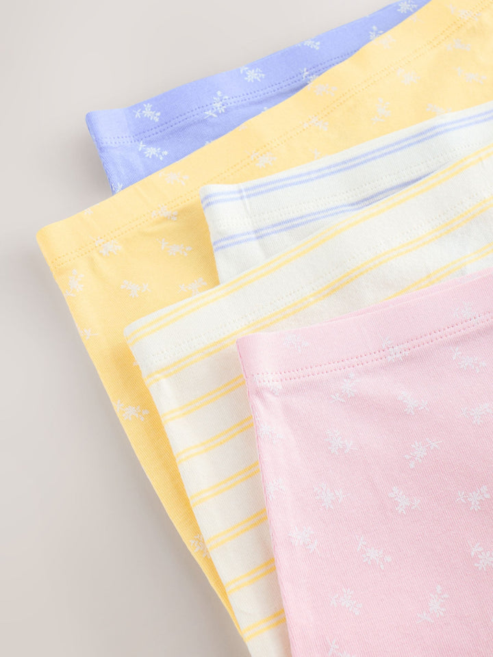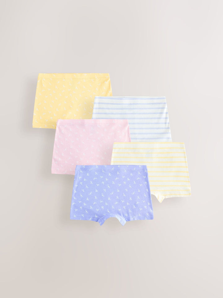 Our 5-pack of blue bow short briefs have a high rise, full coverage shape with a short leg, a double layered gusset and a soft twin need hem finish. In a supersoft cotton with added stretch for comfort and shape retention after washing. 5 pack Soft cotton blend High rise, full coverage shape Elasticated waistband Machine washable. 5 x Knickers 95% Cotton, 5% LYCRA® XTRA LIFE™ elastane. Country of Origin: Bangladesh LYCRA® XTRA LIFE™ fibre keeps your underwear looking new for longer, with lasting comfort and fit. This innovative stretch fabric is lightweight and breathable and will hold its shape wear after wear, wash after wash.