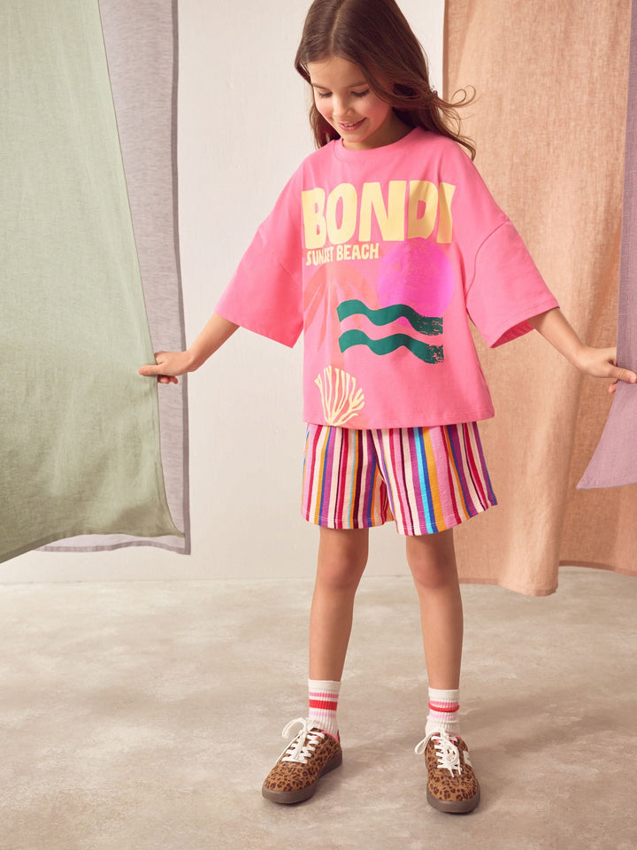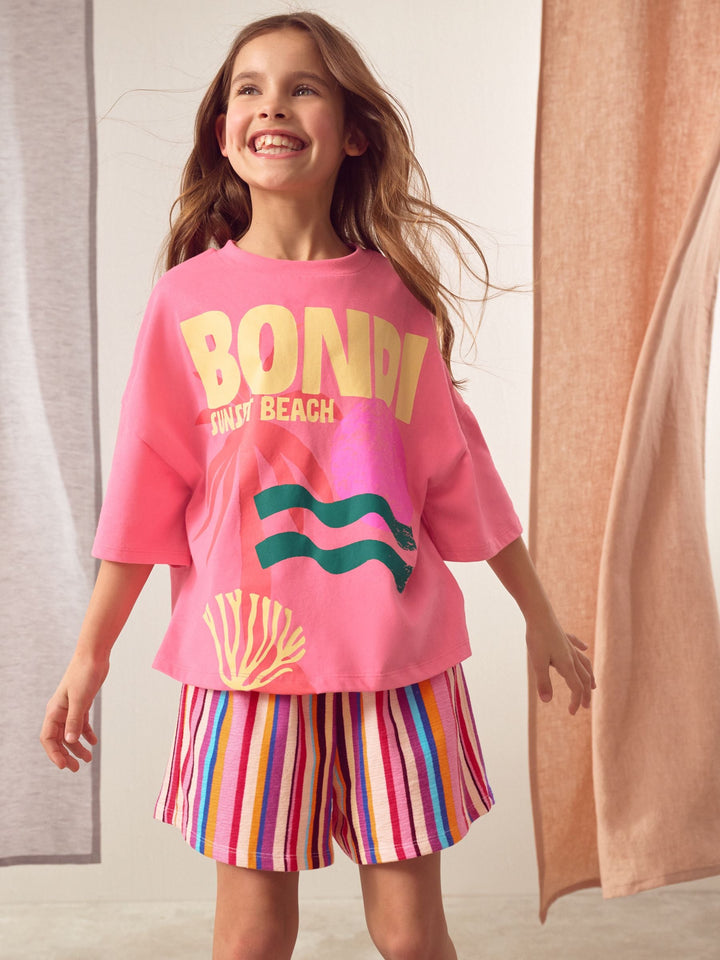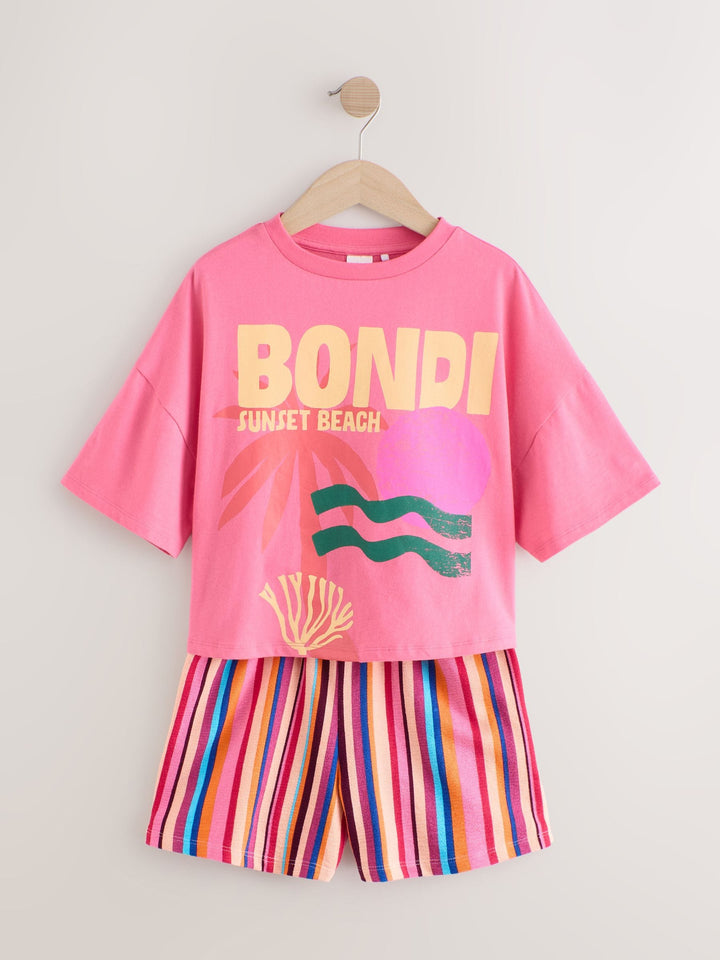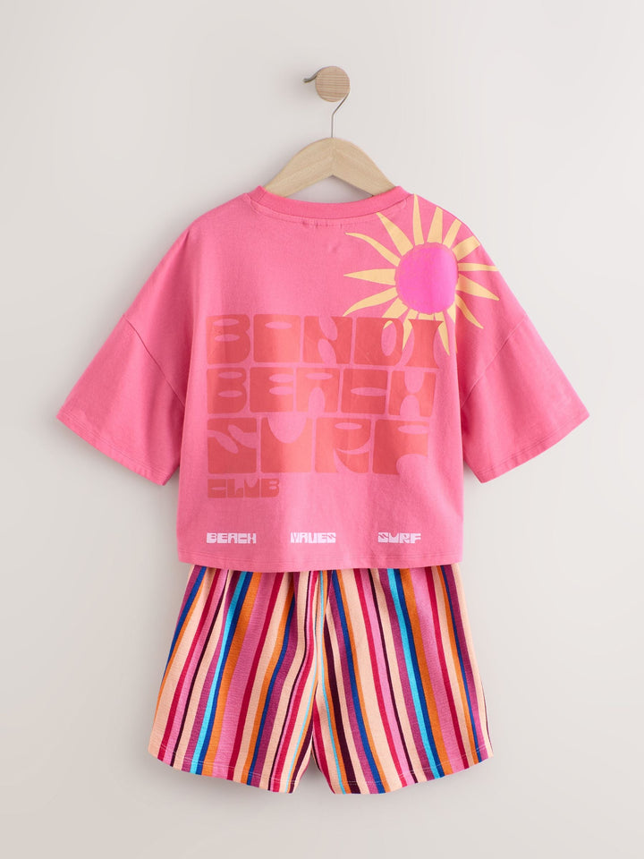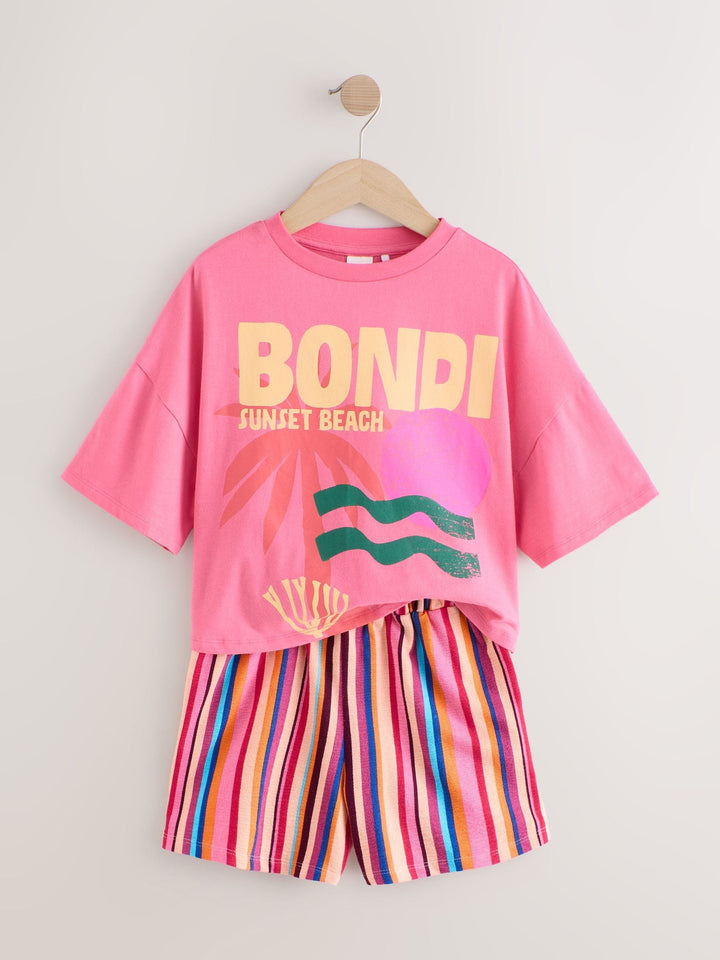 Pink Bondi Stripe 100% Cotton T-Shirt And Shorts Set (3-16yrs)