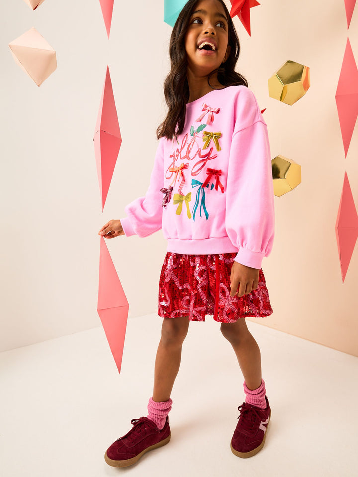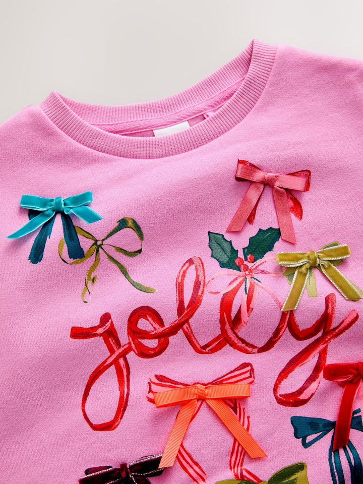Pink Bow Jolly Christmas Jumper Sweatshirt (3-16yrs)