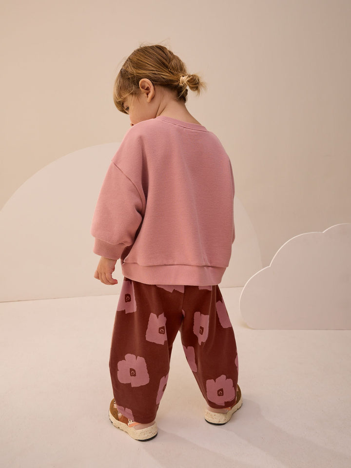 Unleash their playful side with this fun pink-and-brown two-piece set. The soft brushed fabric ensures all-day comfort, while the tomato print on the sweatshirt features cute embroidery. Paired with barrel-leg joggers, it's a stylish and cosy outfit for everyday adventures. Two-piece set Soft brushed fabric Tomato print with embroidery Barrel-leg joggers Long sleeves Machine washable. Sweater 85% Cotton, 15% Recycled polyester. Jogger 100% Cotton. Country of Origin: Sri Lanka