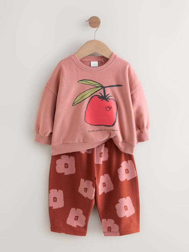 Pink/Brown Tomato Sweatshirt and Barrel Leg Joggers Set (3mths-7yrs)