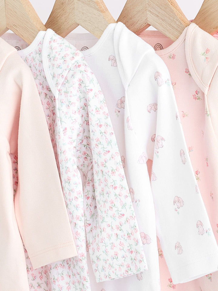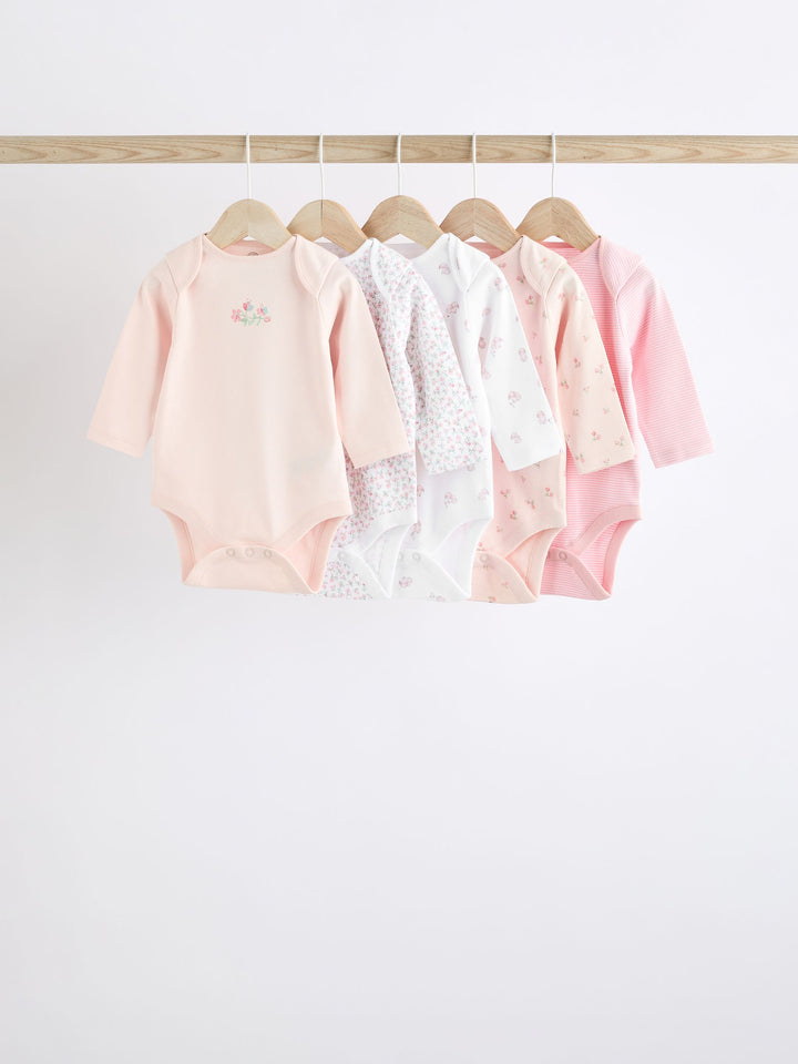 Pink Bunny 5 Pack 5 Pack Long Sleeve Baby Bodysuits