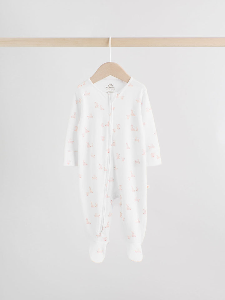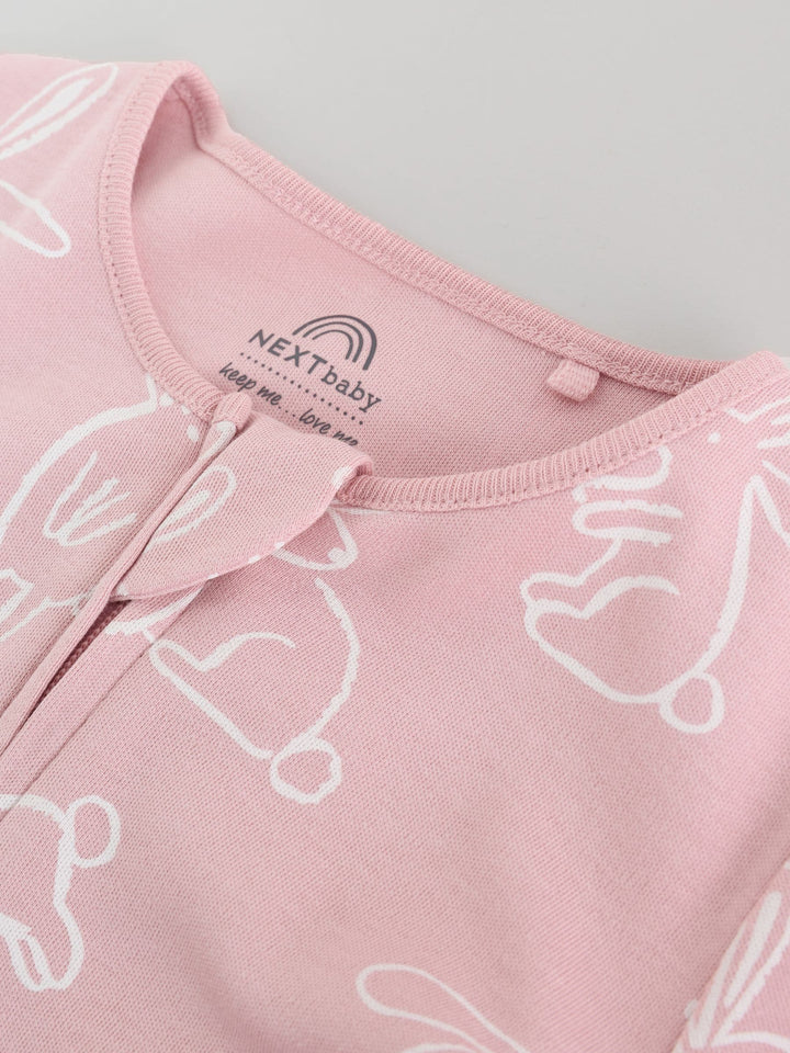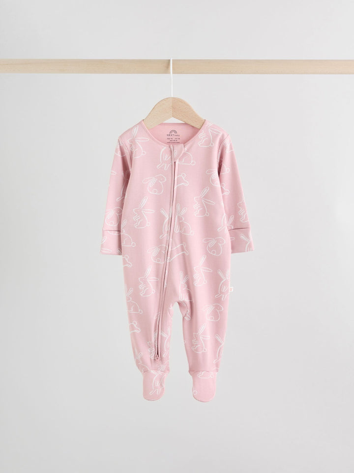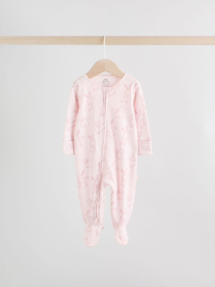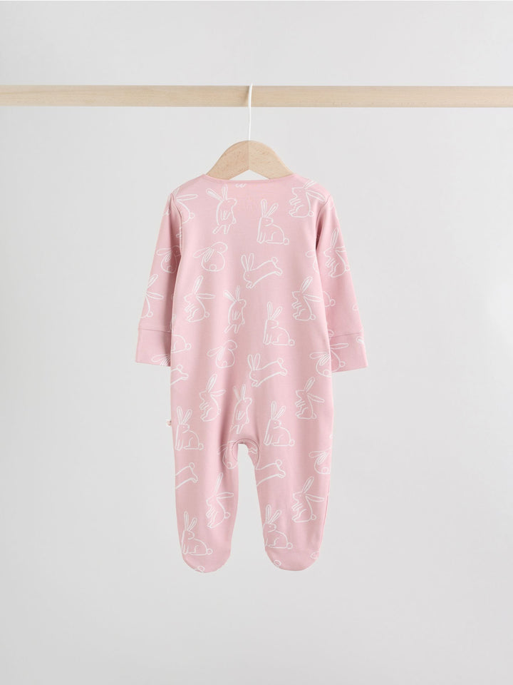 Pink Bunny Two Way Zip Baby Sleepsuits 3 Pack (0mths-2yrs)