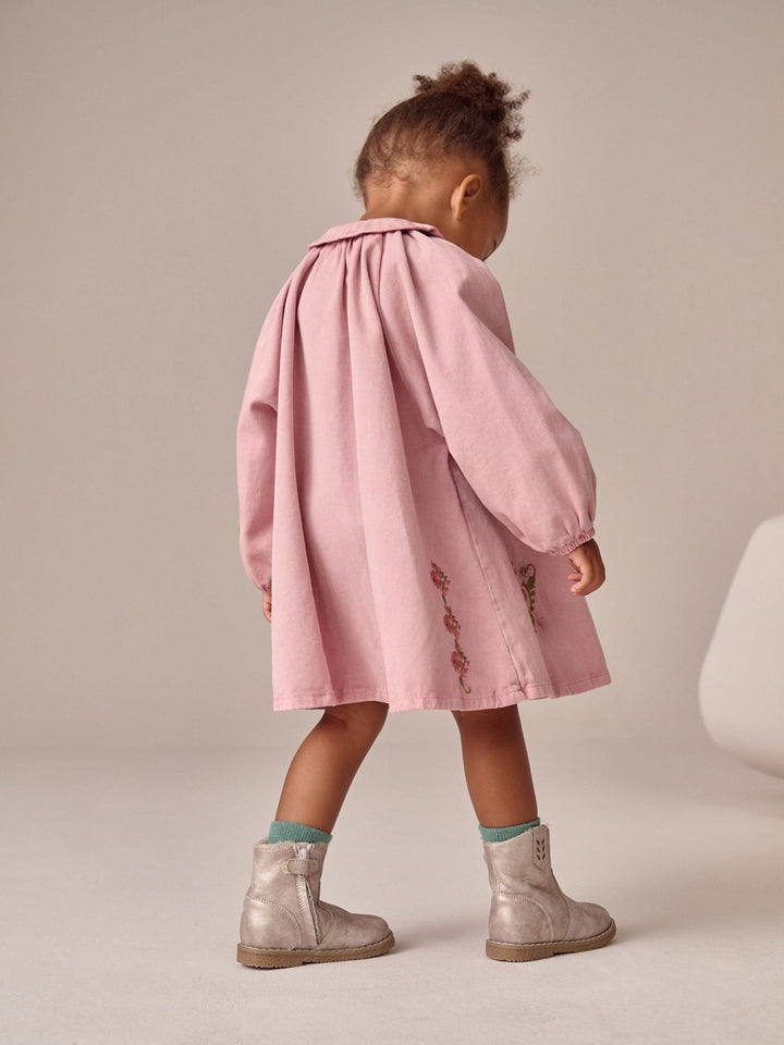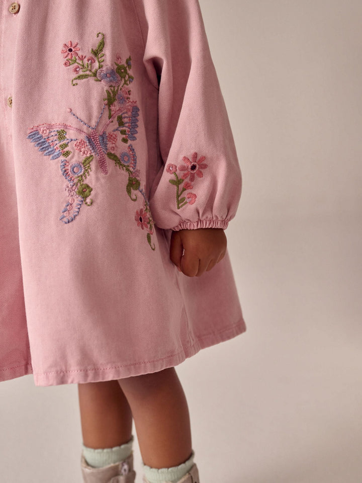 Pink Butterfly Embroidery Shirt Dress (3mths-8yrs)