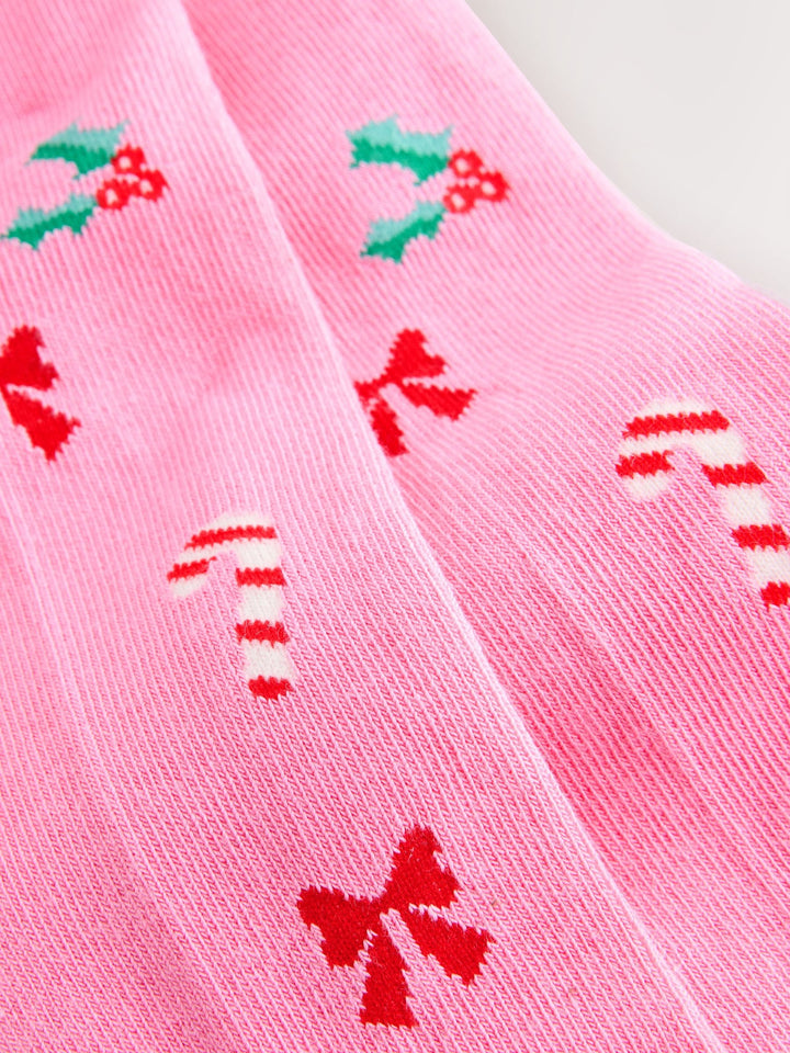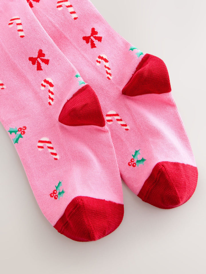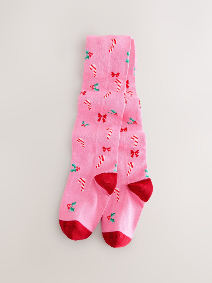 Pink Candy Cane Print Cotton Rich Christmas Tights