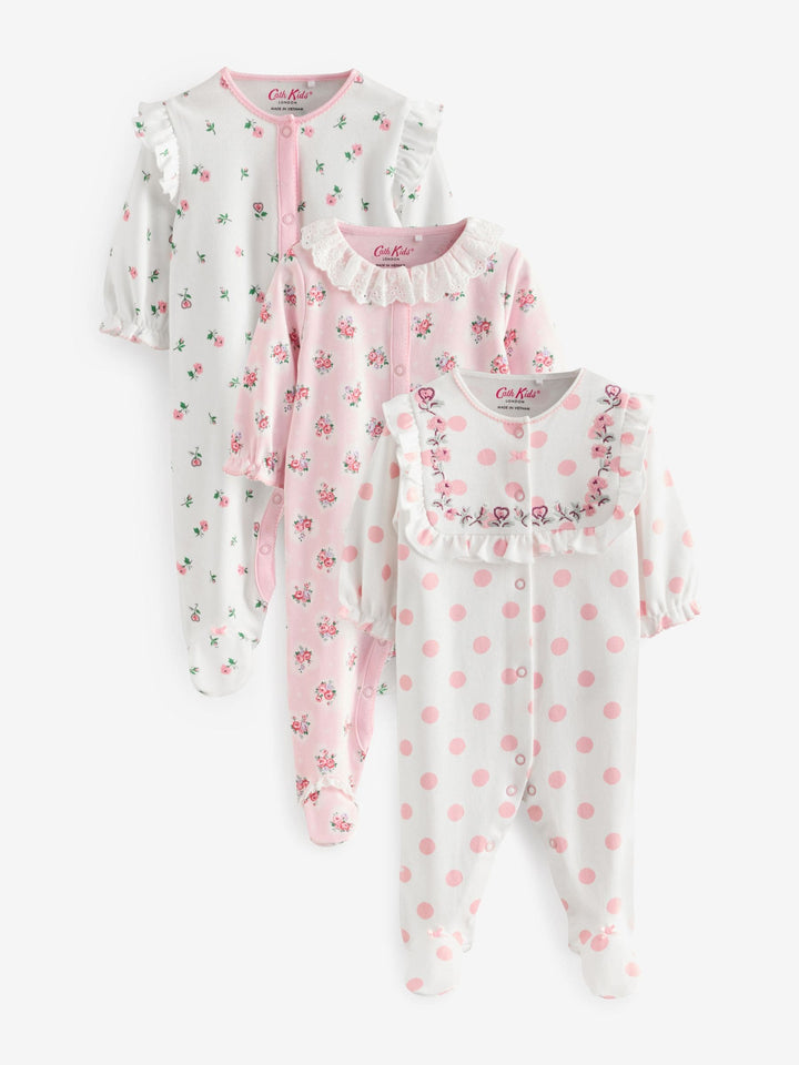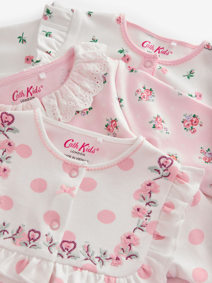 Pink Cath Kidston Floral Baby 100% Cotton Sleepsuits 3 Pack