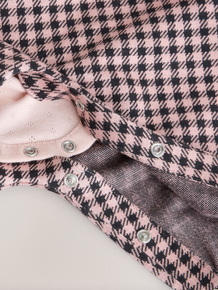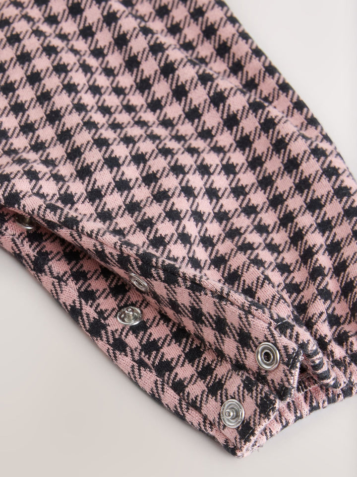 Pink / Chocolate Gingham Baby Long Sleeve Bodysuit and Dungarees 2 Piece Set (0mths-2yrs)