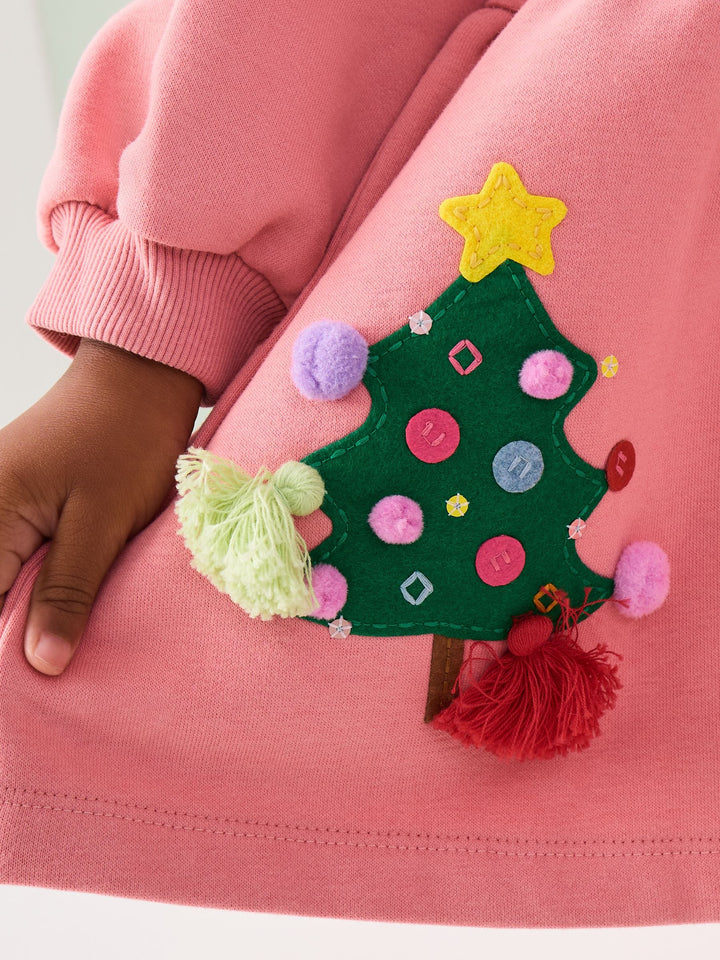 Pink Christmas Embellished Sweat Dress (3mths-7yrs)