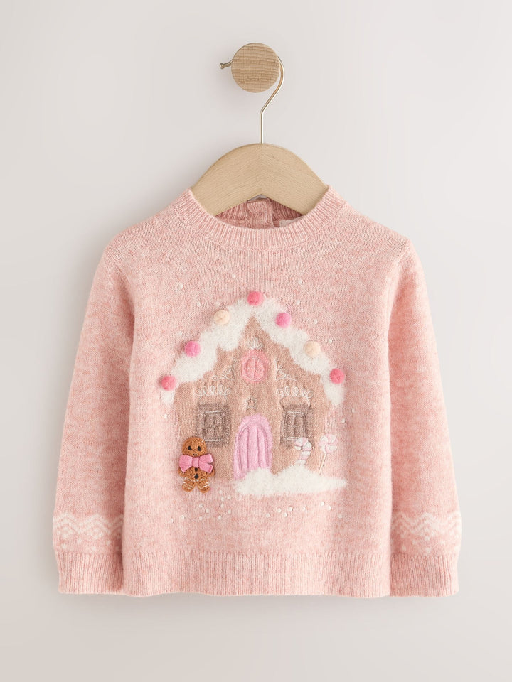 Pink Christmas Gingerbread House Jumper (3mths-7yrs)