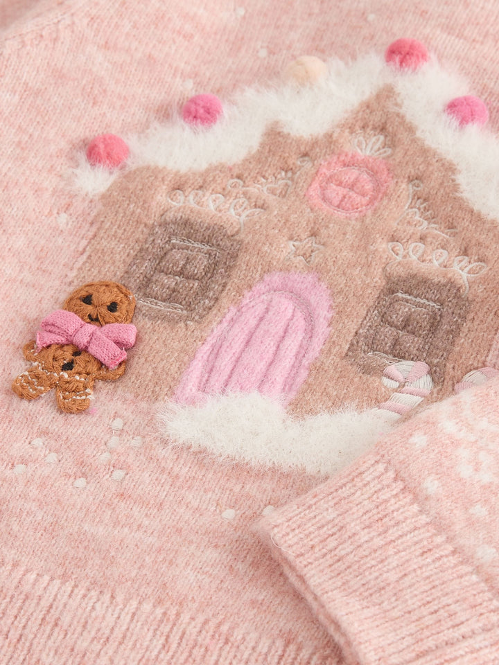 Pink Christmas Gingerbread House Jumper (3mths-7yrs)