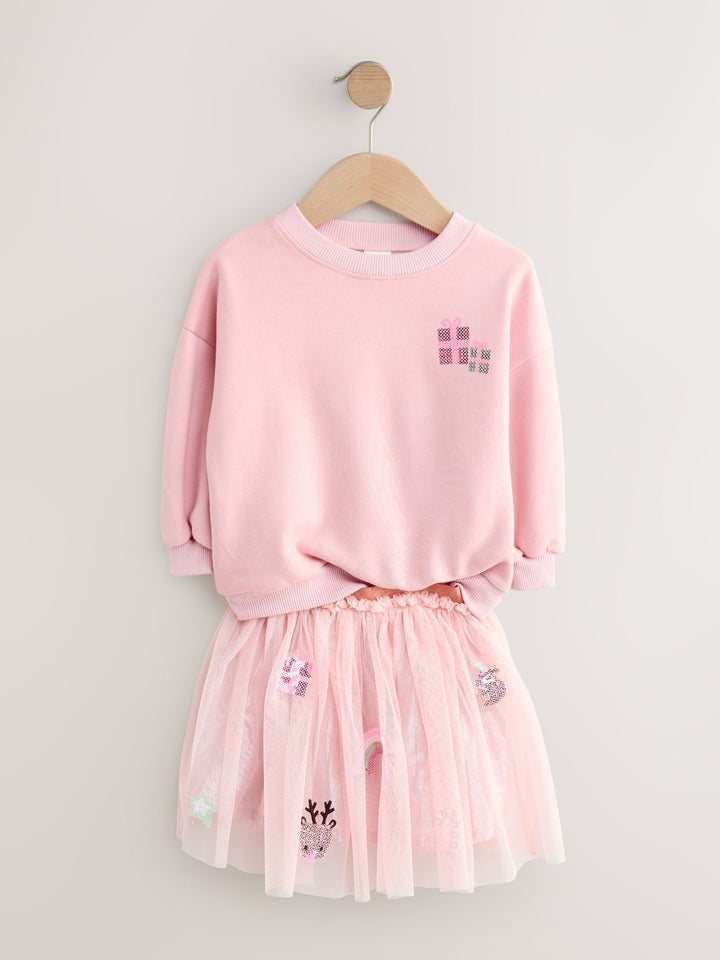 Pink Christmas Long Sleeve Top and Skirt Set (3mths-7yrs)