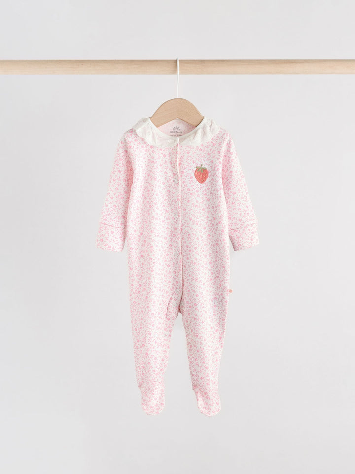 Pink Collar 3 Pack Baby Sleepsuits (0-2yrs)