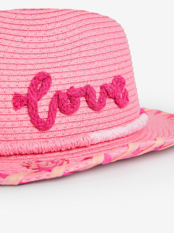 The perfect accessory for sun-filled adventures, our pink cowgirl straw hat will keep the sun off your little one's face and neck, whilst adding a bit of yee-haw to any outfit with an embroidered 'Love' design to the side. Woven design Wide brim Perfect for summer 88% Paper, 12% Polyester. Country of Origin: China