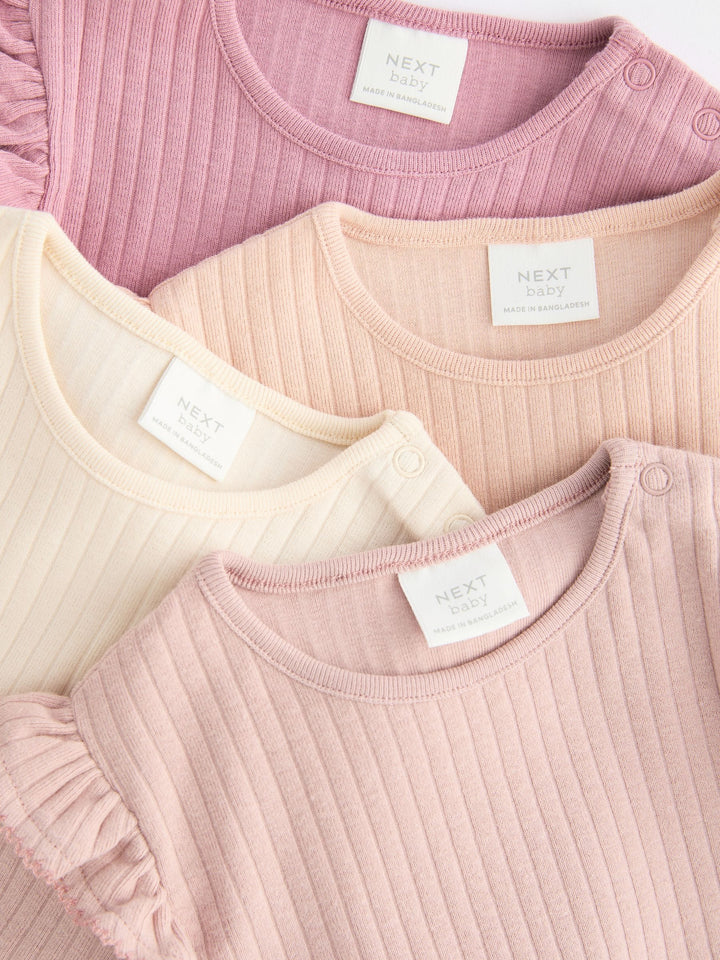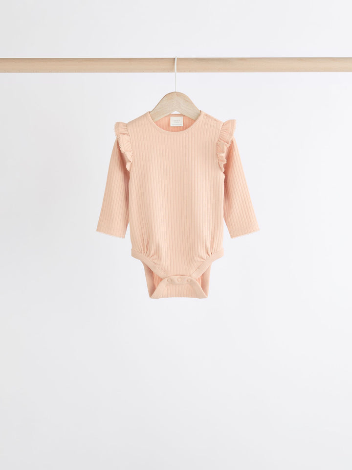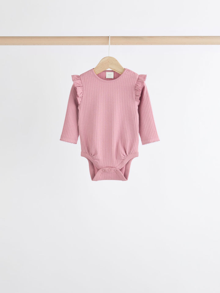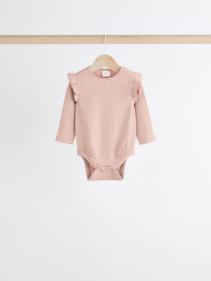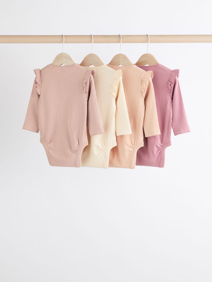 Pink/Cream Baby Long Sleeve Frill Bodysuits 4 Pack (0mths-2yrs)