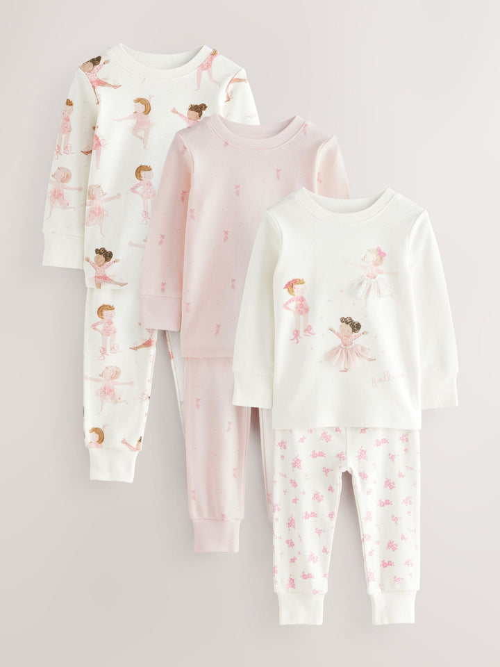 Pink/Cream Ballerina Long Sleeve Snuggle Pyjamas 3 Pack (9mths-12yrs)