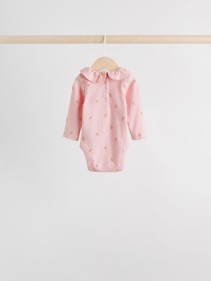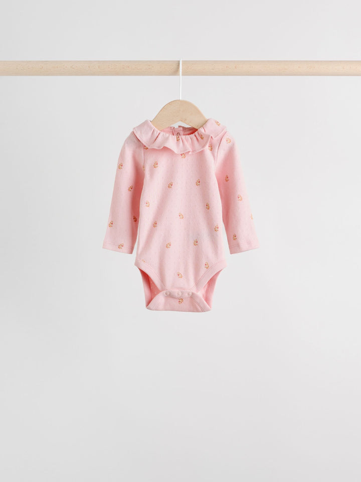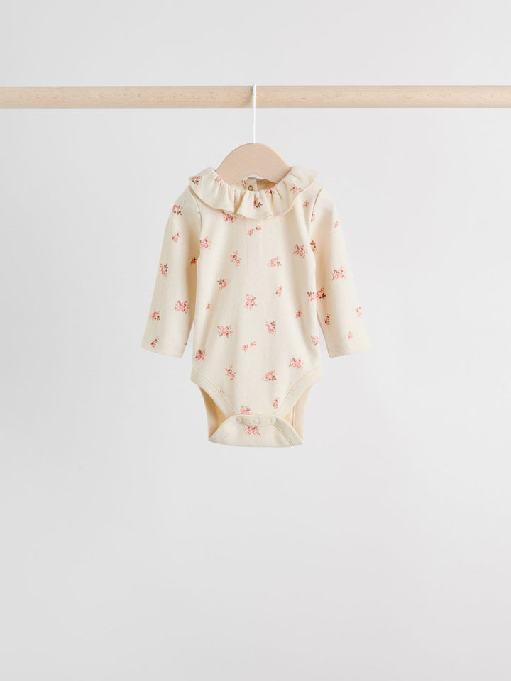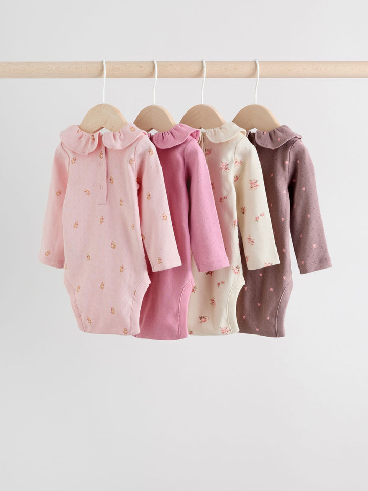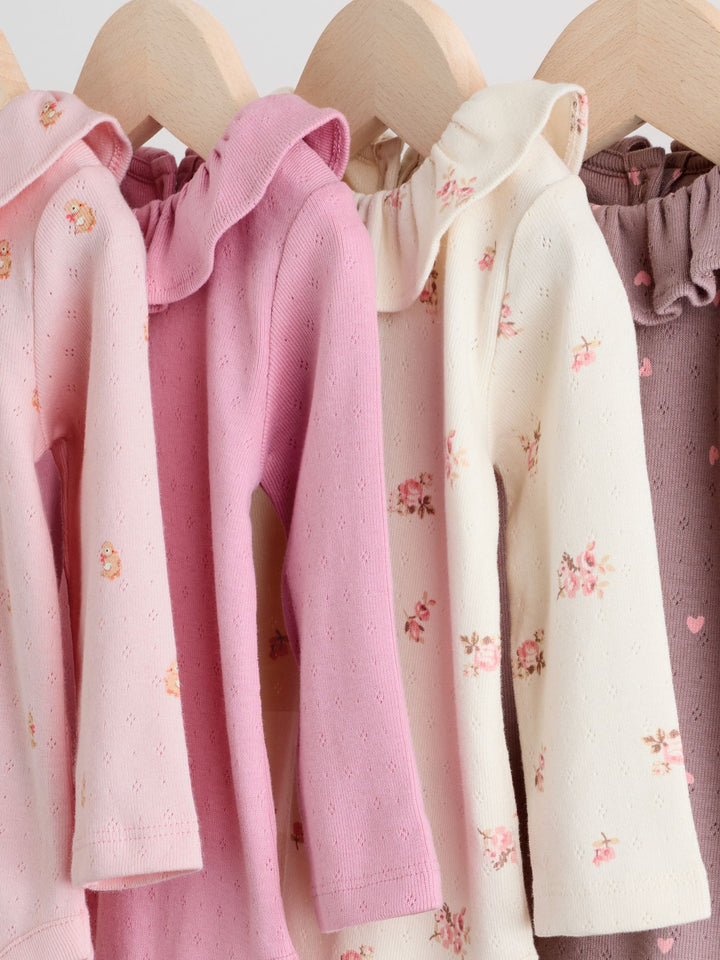 Pink/ Cream/ Brown Ditsy Baby Long Sleeve Frill Bodysuits 4 Pack (0mths-2yrs)