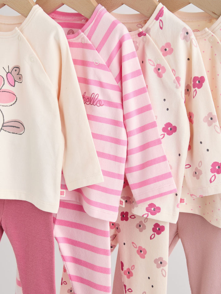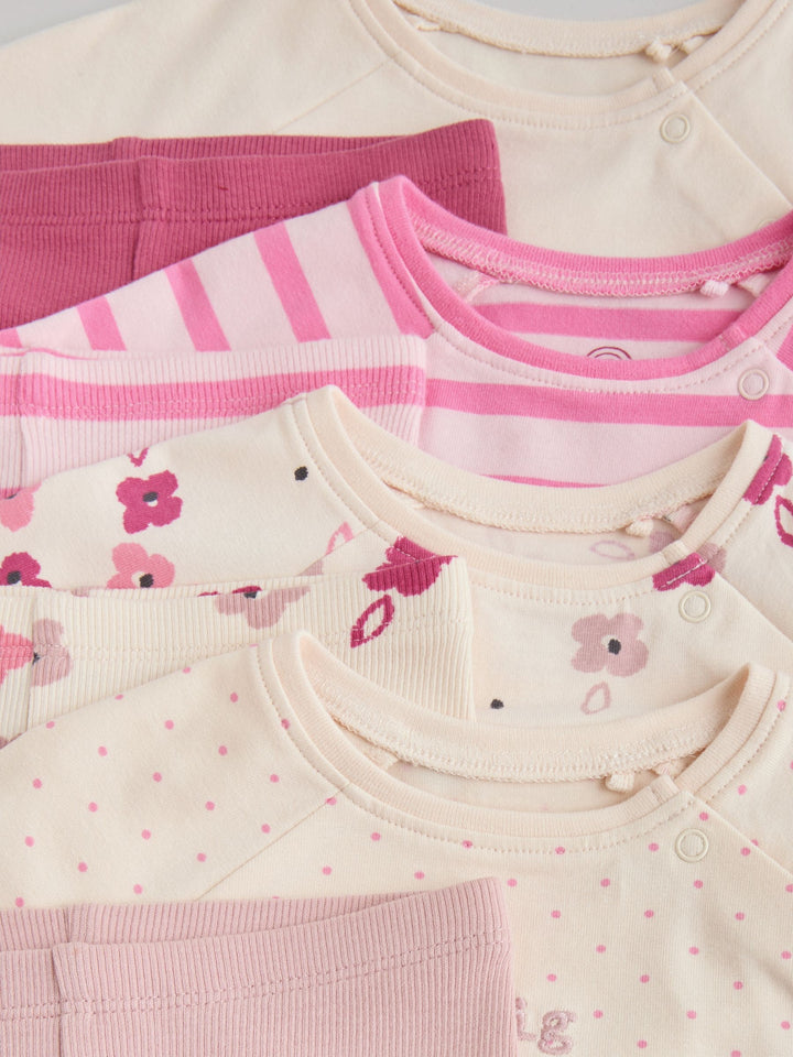Pink/Cream Flower Baby Long Sleeve Top and Leggings Set 8 Piece (0mths-2yrs)