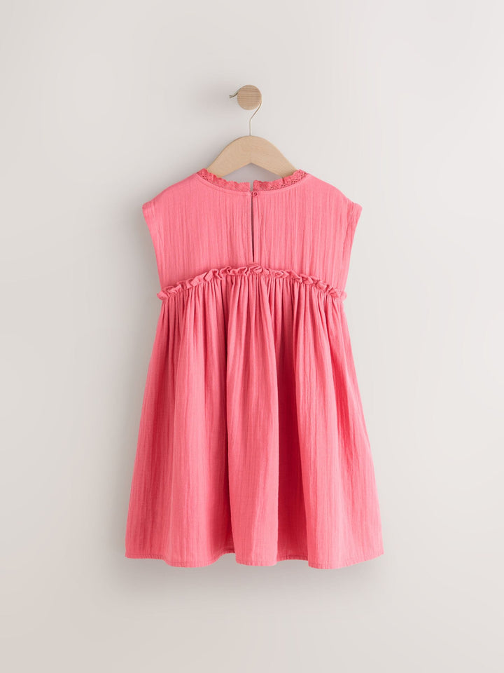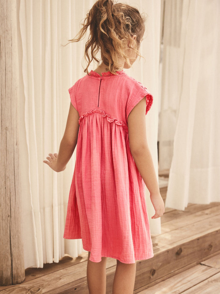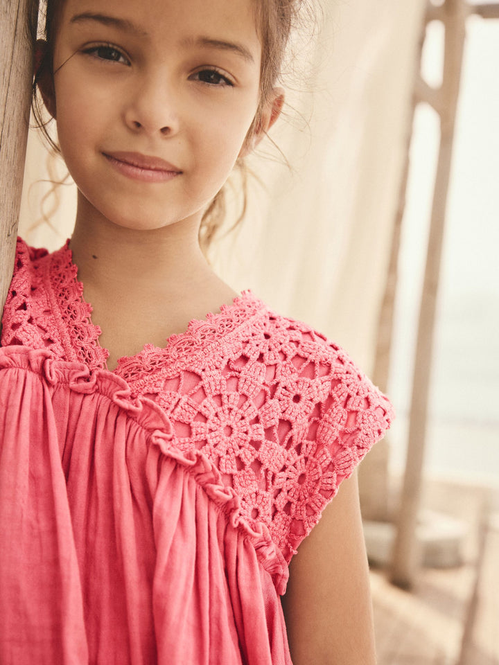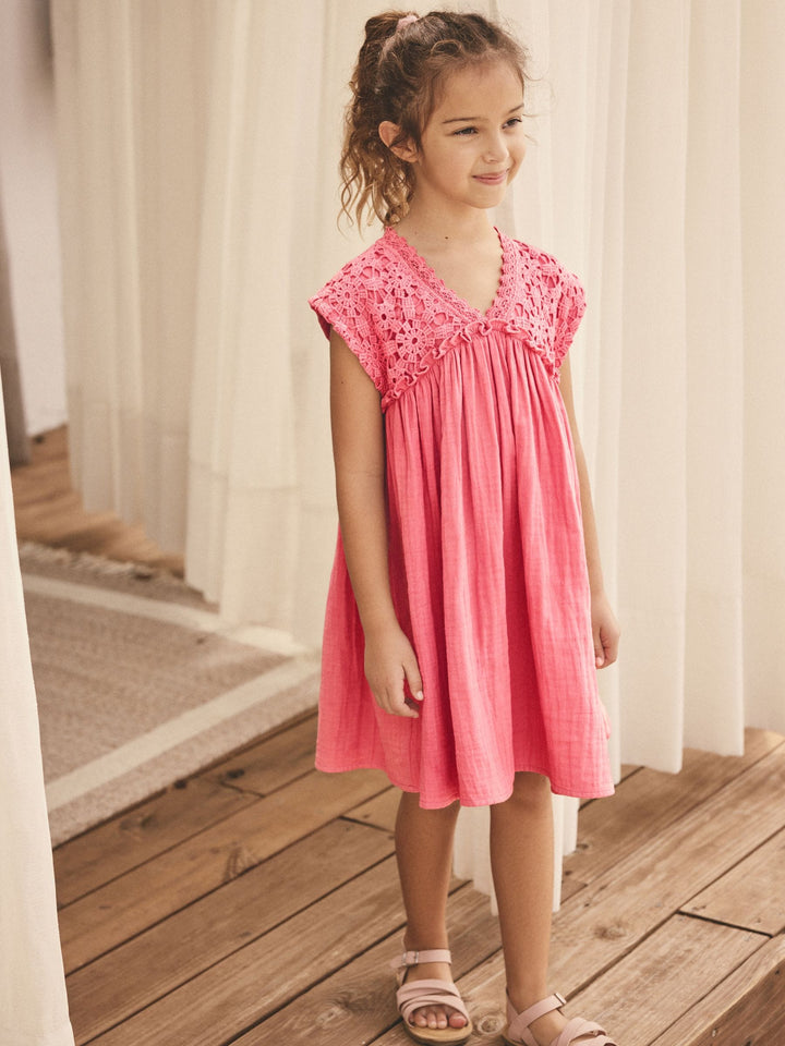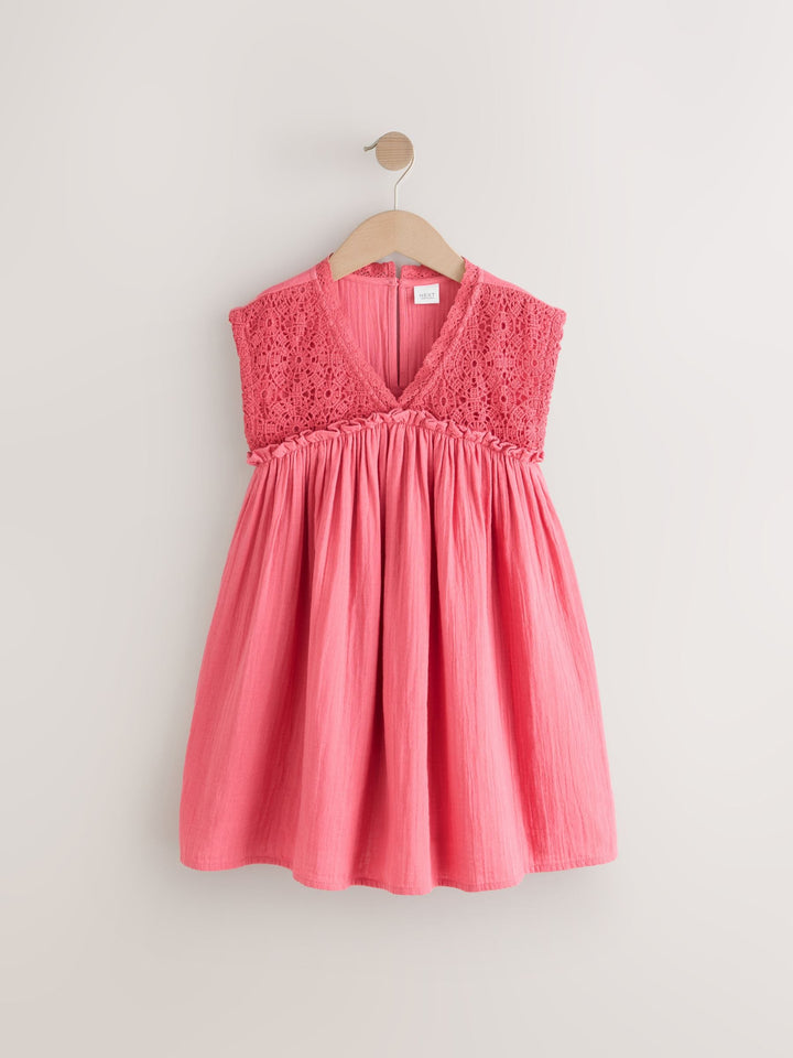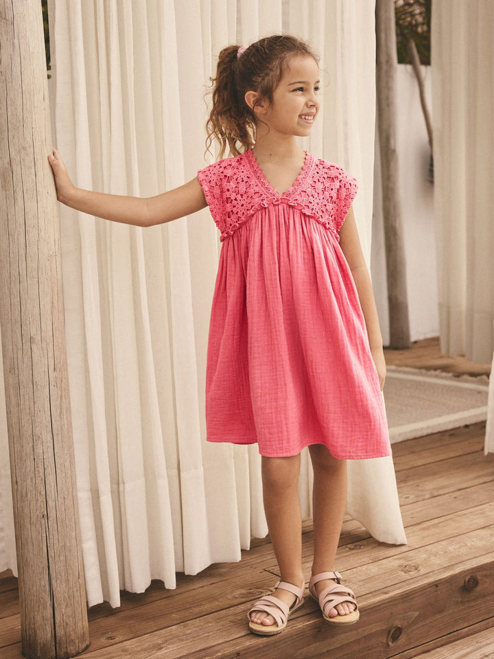 Pink Crochet Trim Summer Dress (3-16yrs)