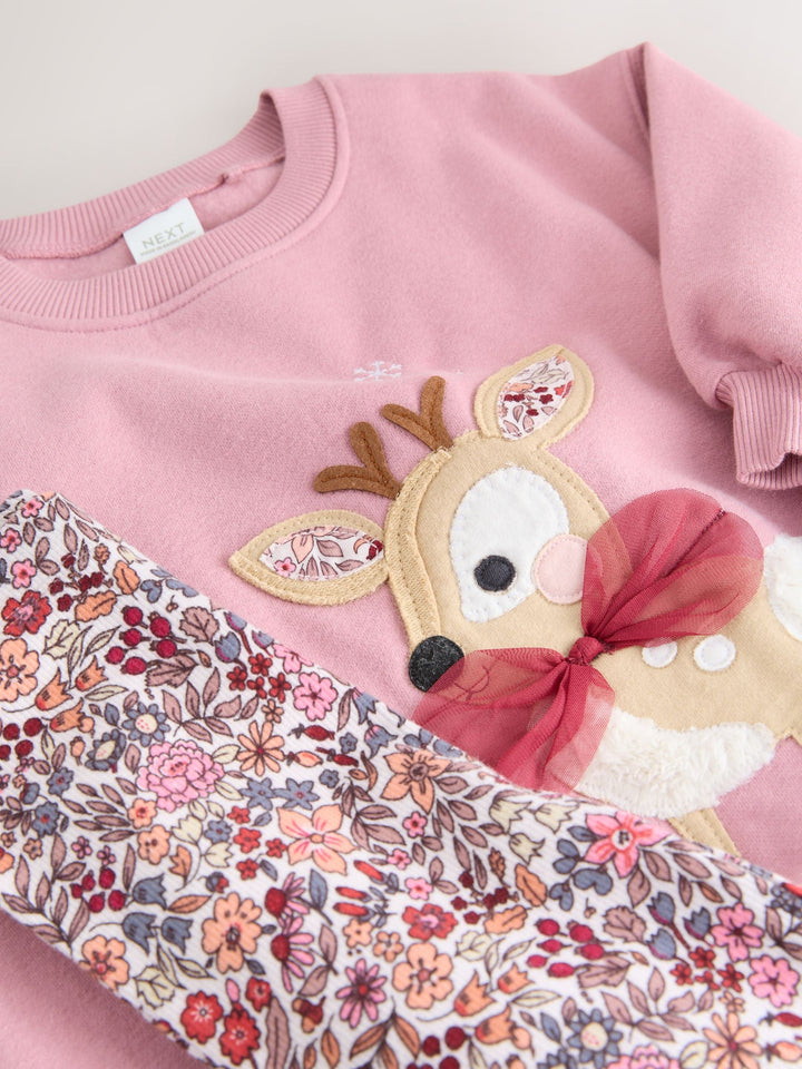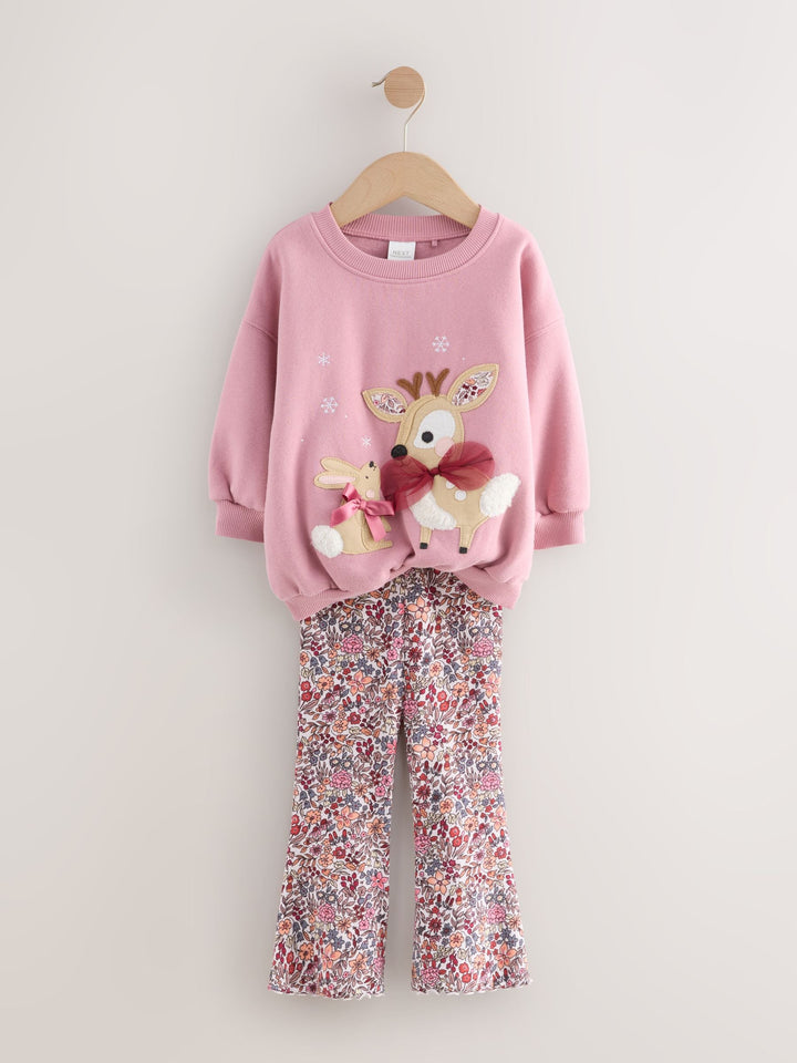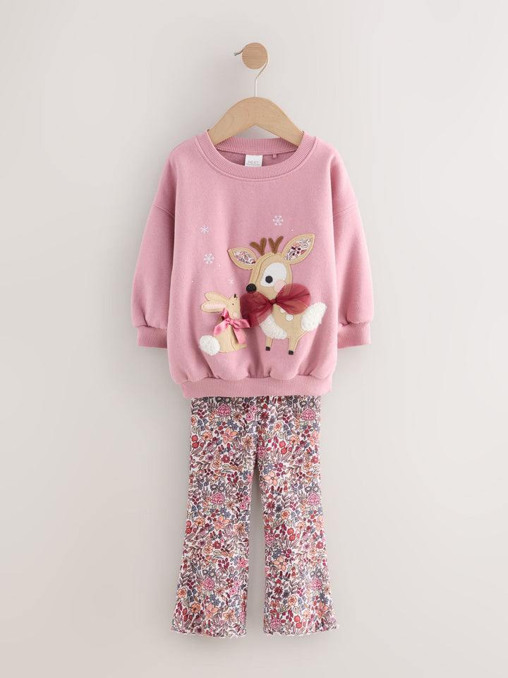 Pink Deer & Bunny Sweatshirt and Flare Leggings Set (3mths-7yrs)