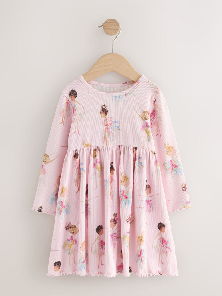 Pink Fairy Long Sleeve Ribbed Dress (3mths-7yrs)