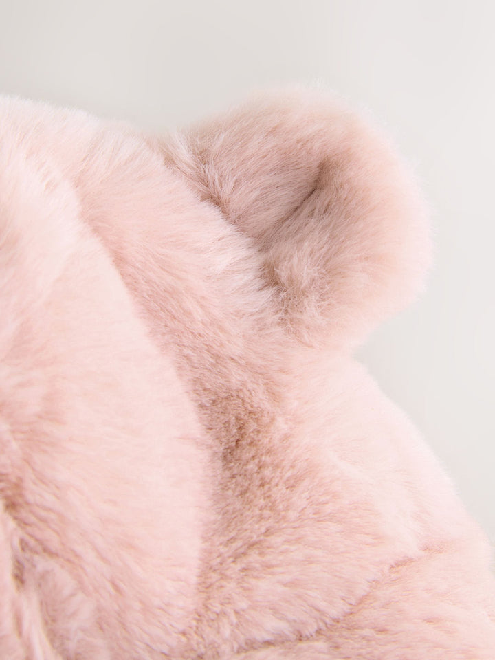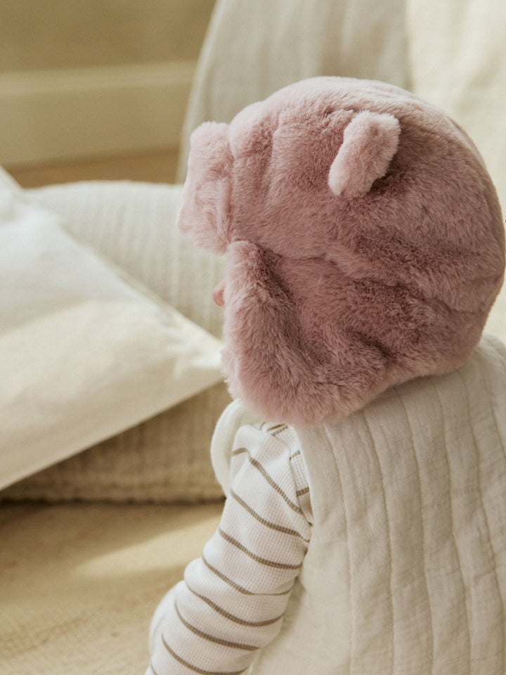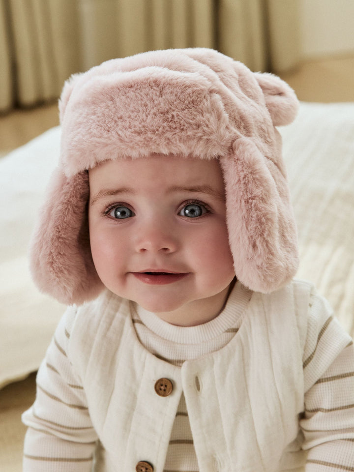 Pink Faux Fur Bear Baby Trapper Hat (0mths-2yrs)