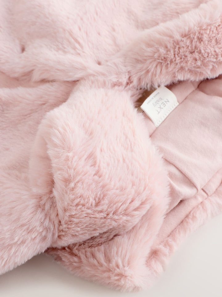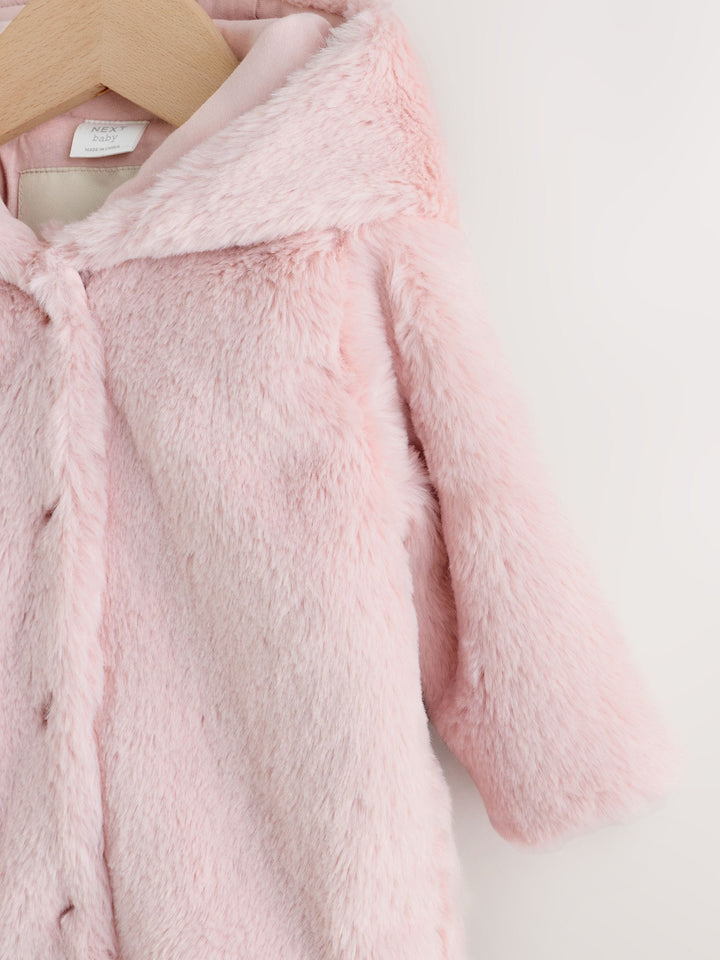 Keep your little one cosy in this charming faux fur hooded jacket. The supersoft fabric provides a comfortable feel, while the popper-front placket ensures easy dressing. An adorable and warm layer perfect for cooler days. Faux fur Hooded Popper front placket Main 100% Recycled polyester. Main Lining 100% Cotton. Sleeve Lining 100% Recycled polyester. Country of Origin: China Warning: Keep away from fire and flames.