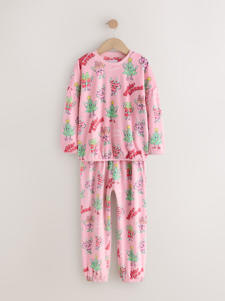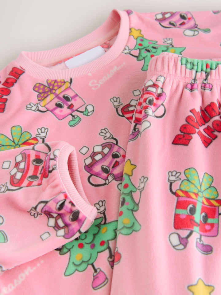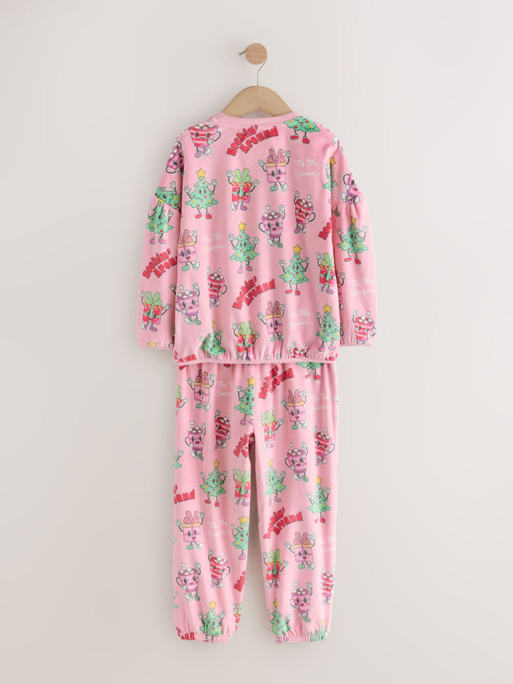 Pink Festive Christmas Cosy Fleece Pyjamas (3-16yrs)