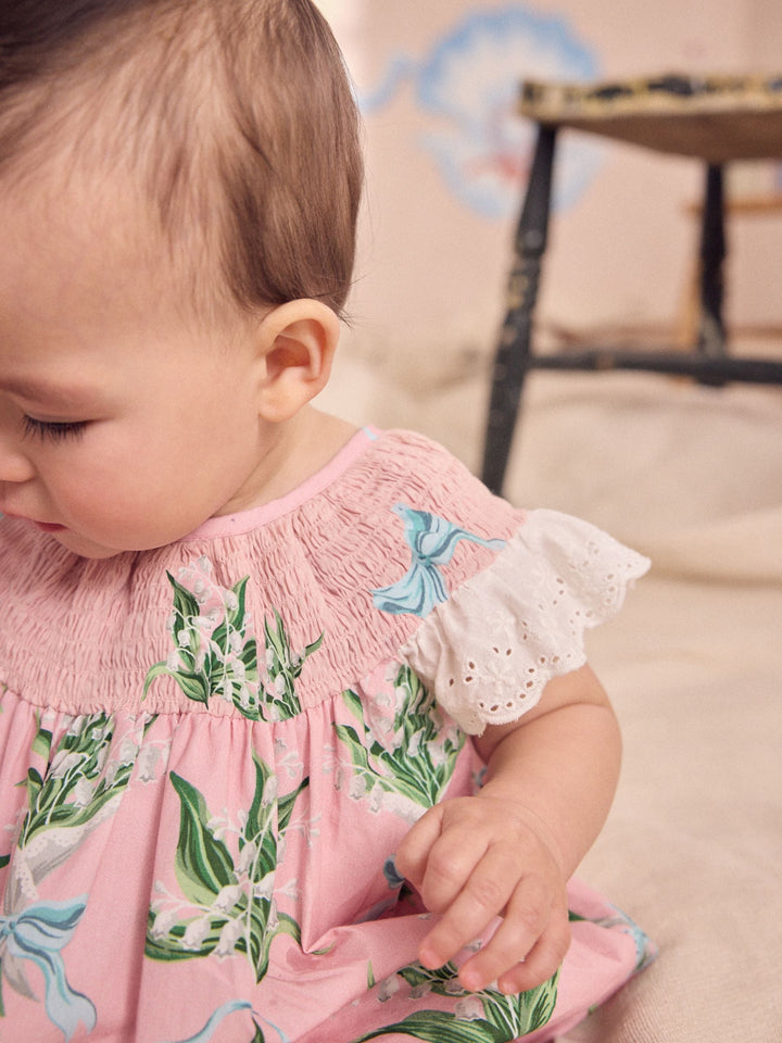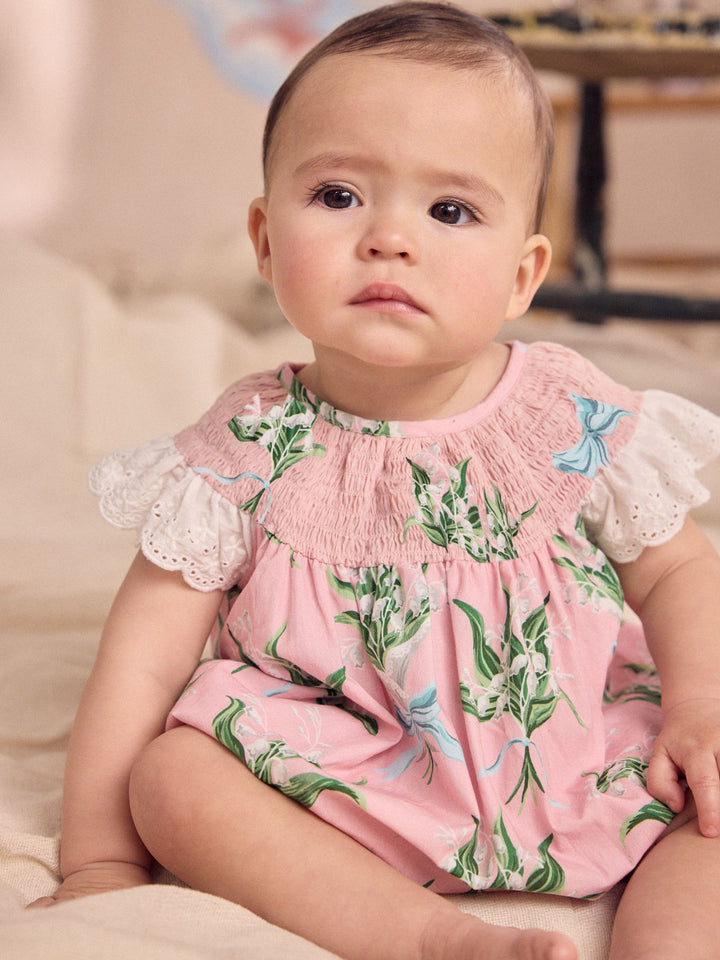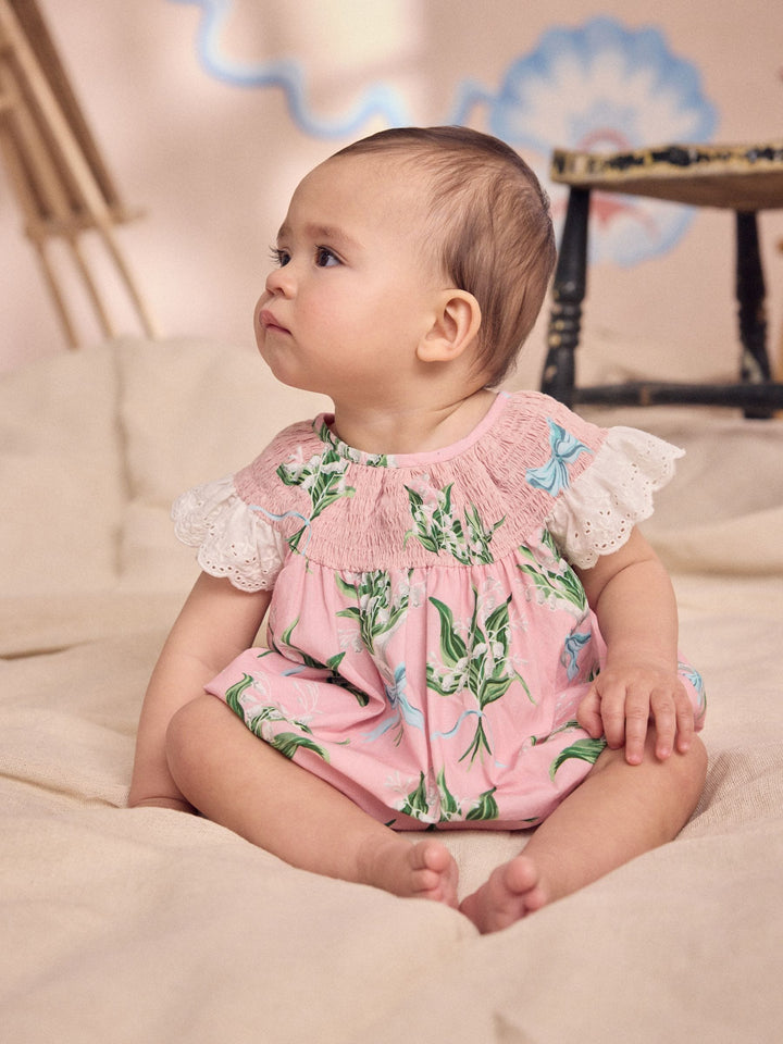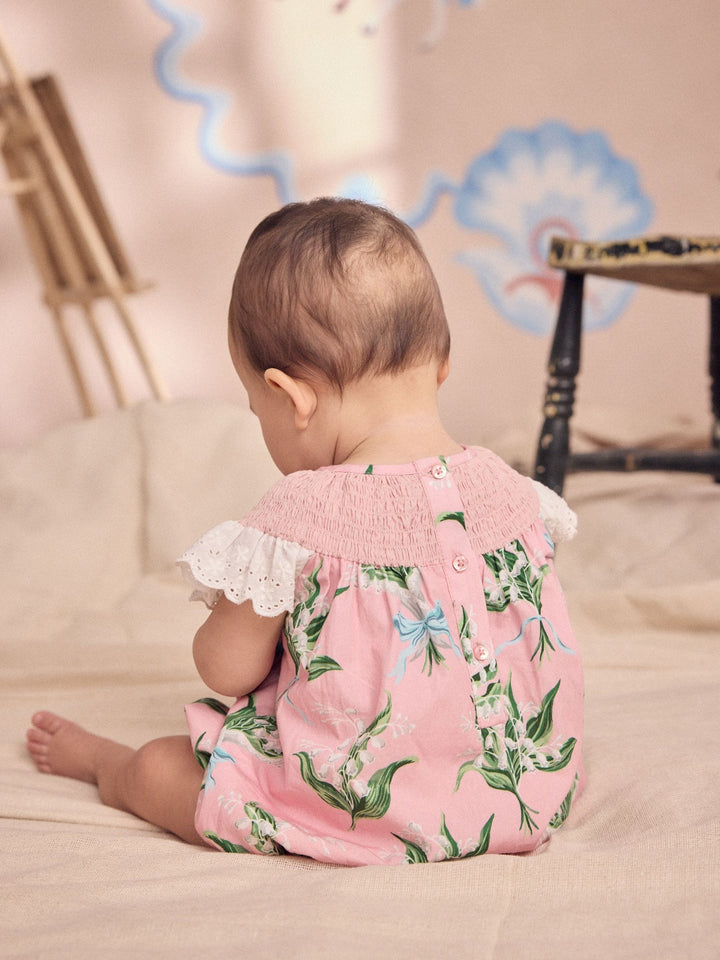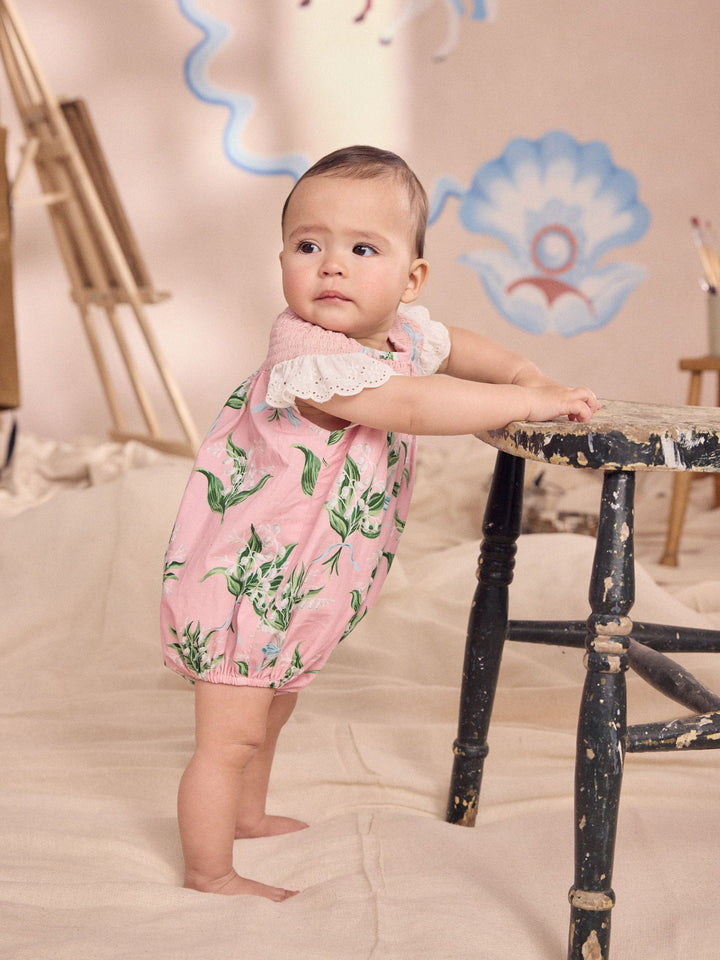 Pink Floral 100% Cotton Printed Baby Broderie Romper