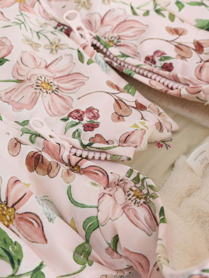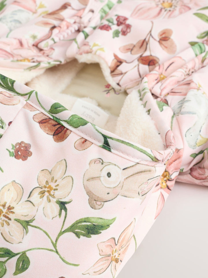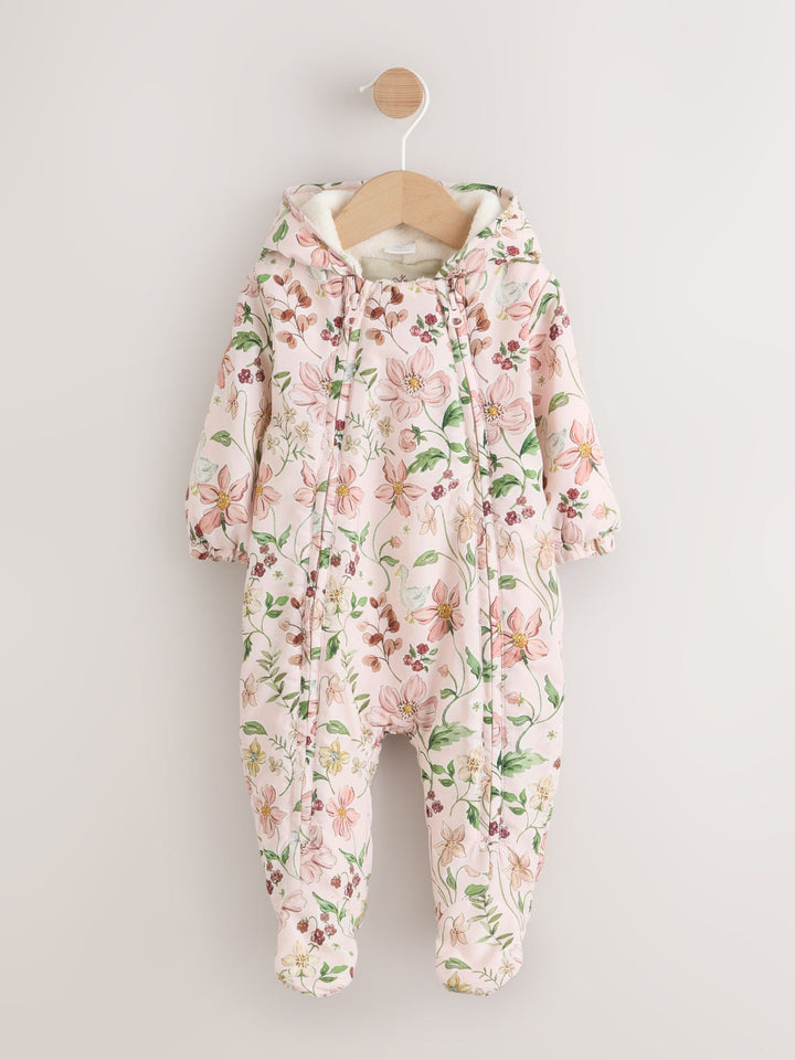 Pink Floral All-Over Printed Double Zip Baby Nylon Hooded Pramsuit (0mths-2yrs)