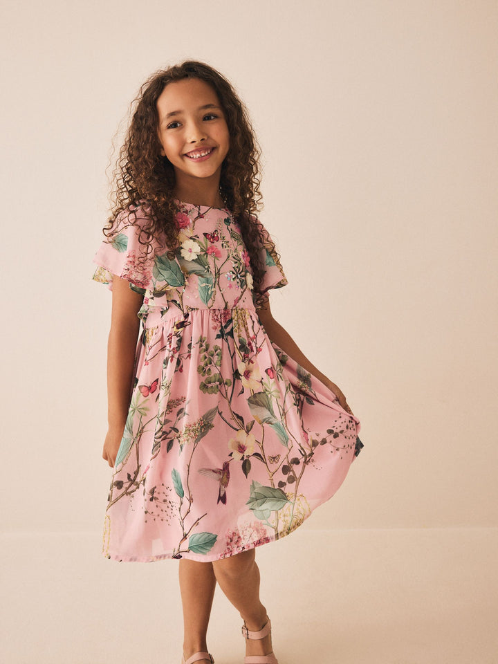 Pink Floral Embellished Occasion Dress (3-16yrs)