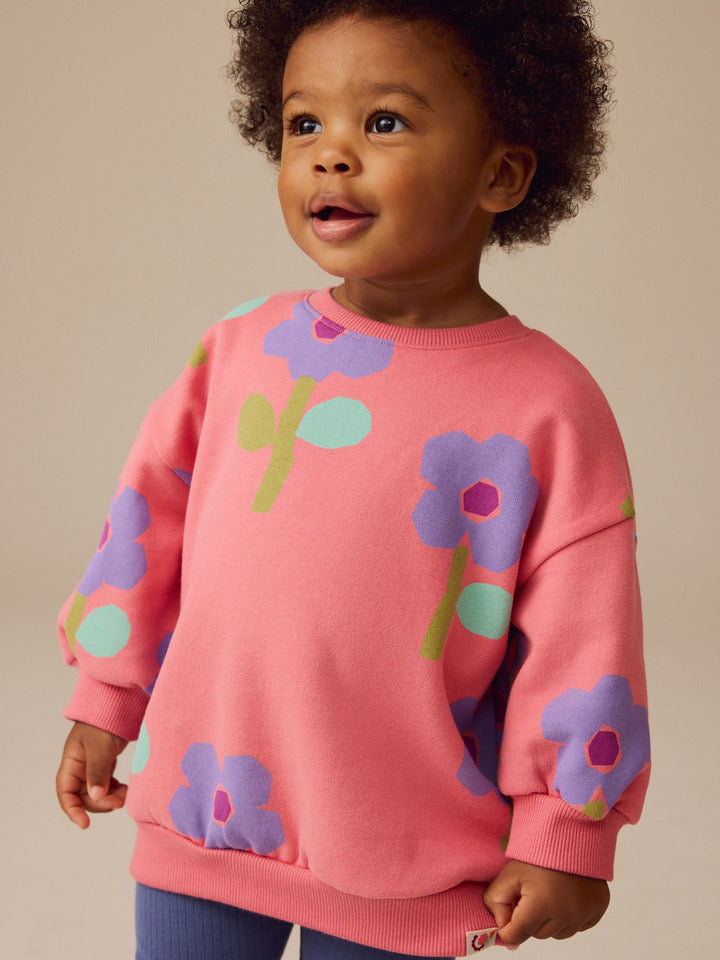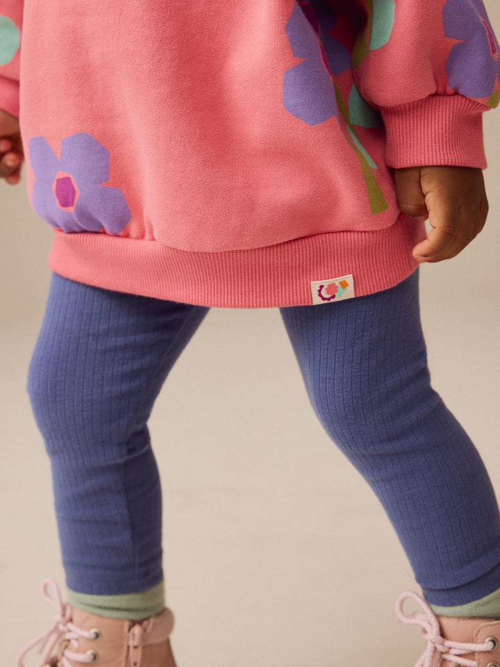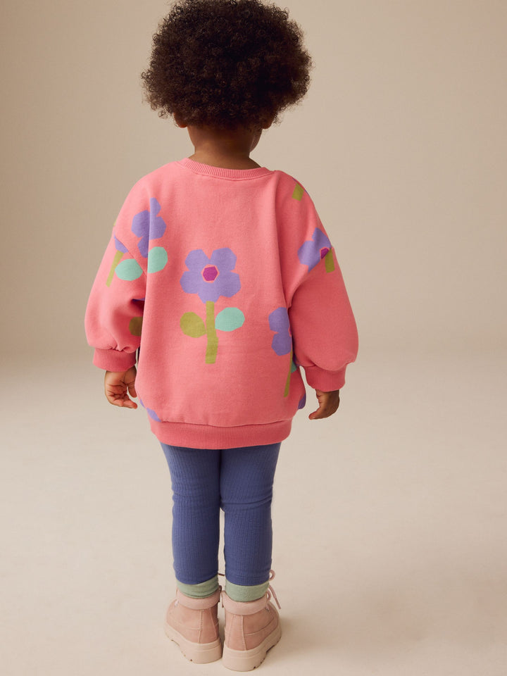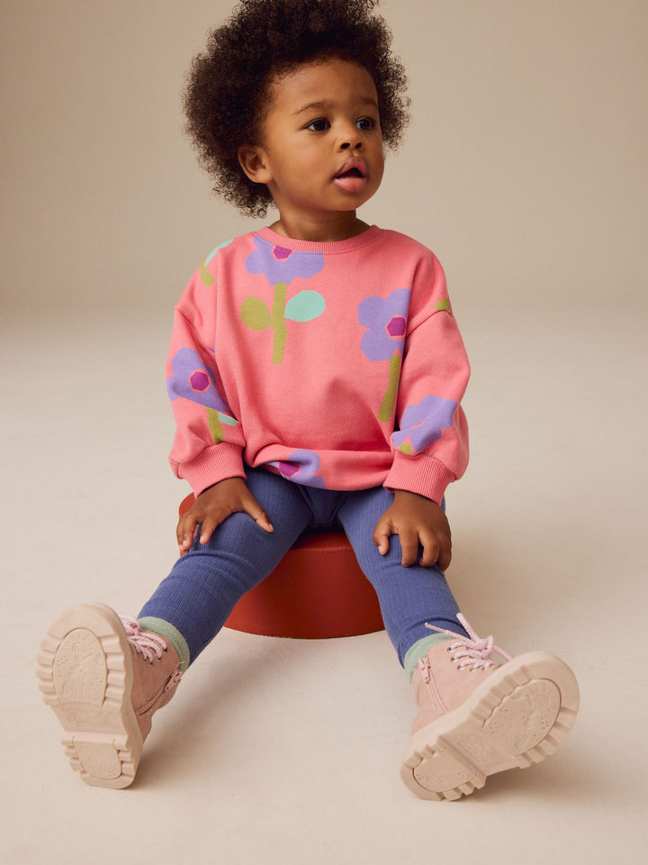 Perfect for when the weather cools down, this pink and blue 2-piece set features a cotton-rich floral print jersey sweatshirt with a crewneck collar, available in a choice of colours and prints, alongside a pair of matching cotton-blend leggings. 2-piece set Cotton-rich fabric Crewneck sweatshirt Drop shoulders Ribbed hems Ribbed leggings Elasticated waistband Machine washable. Sweater 84% Cotton, 16% Polyester. Leggings 56% Cotton, 38% Polyester, 6% Elastane. Country of Origin: Sri Lanka