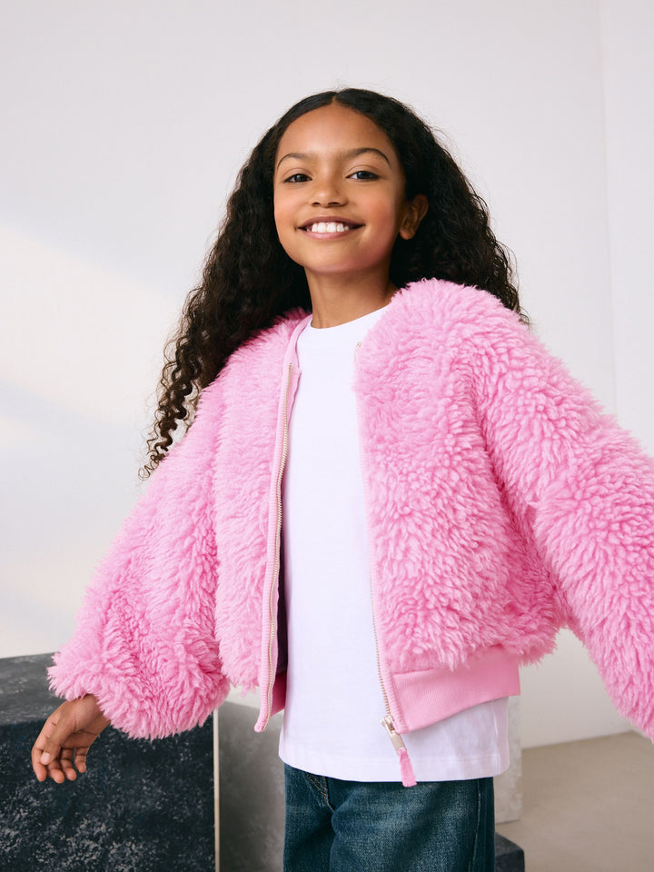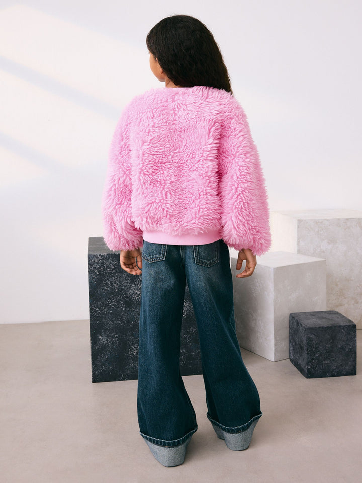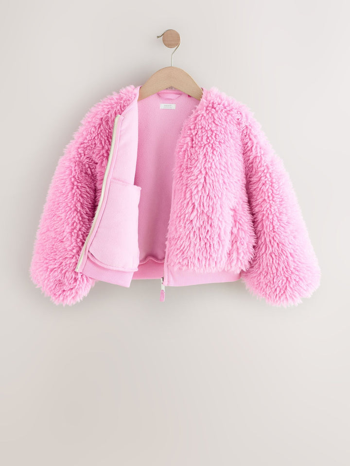 Pink Fluffy Zip-Up Fleece Borg Jacket (3-16yrs)