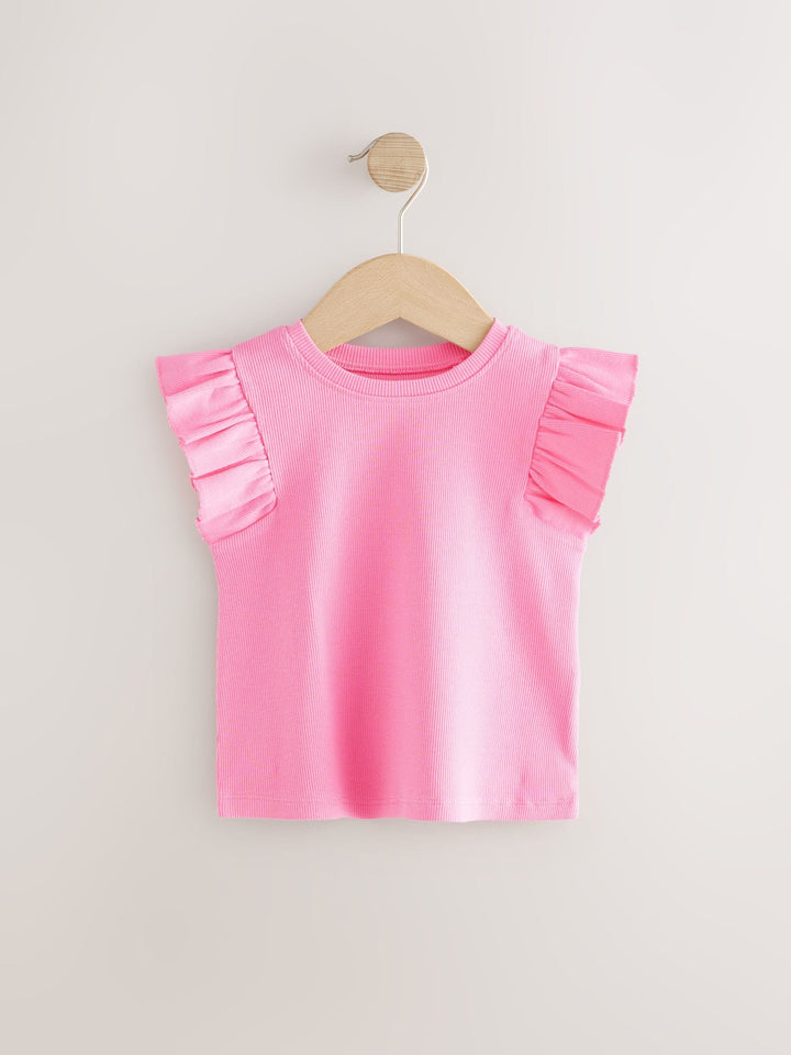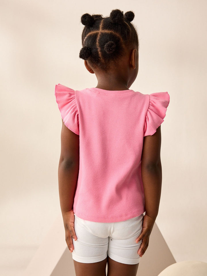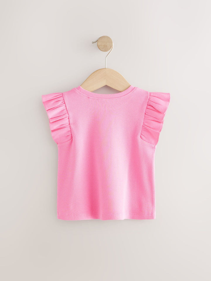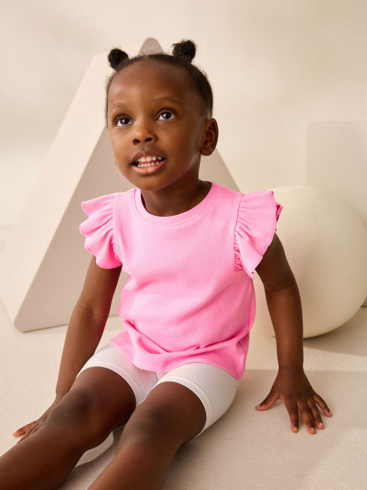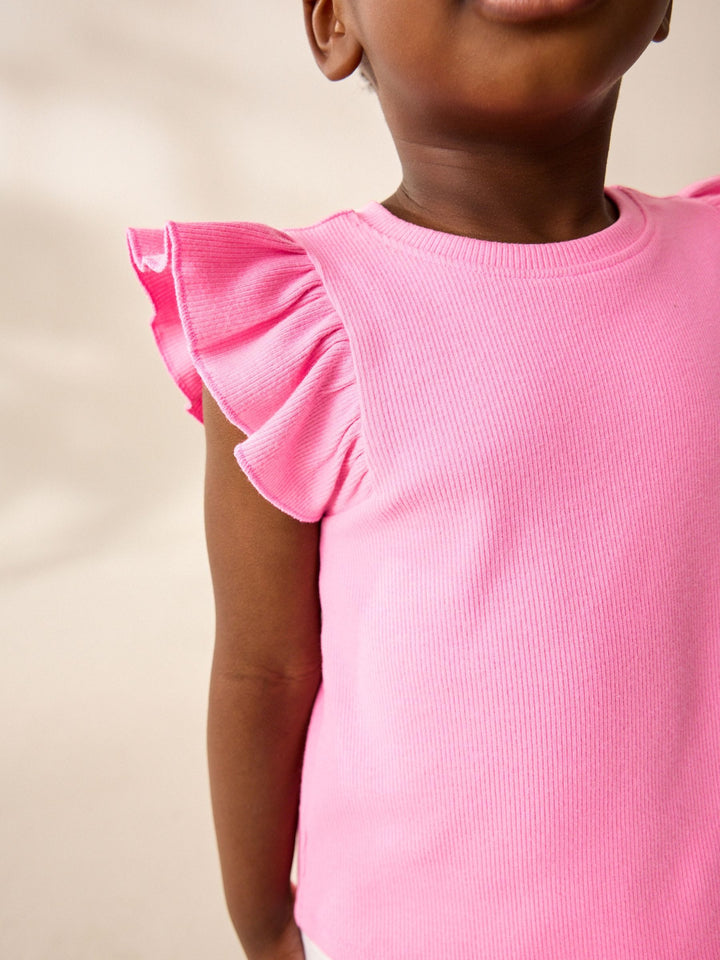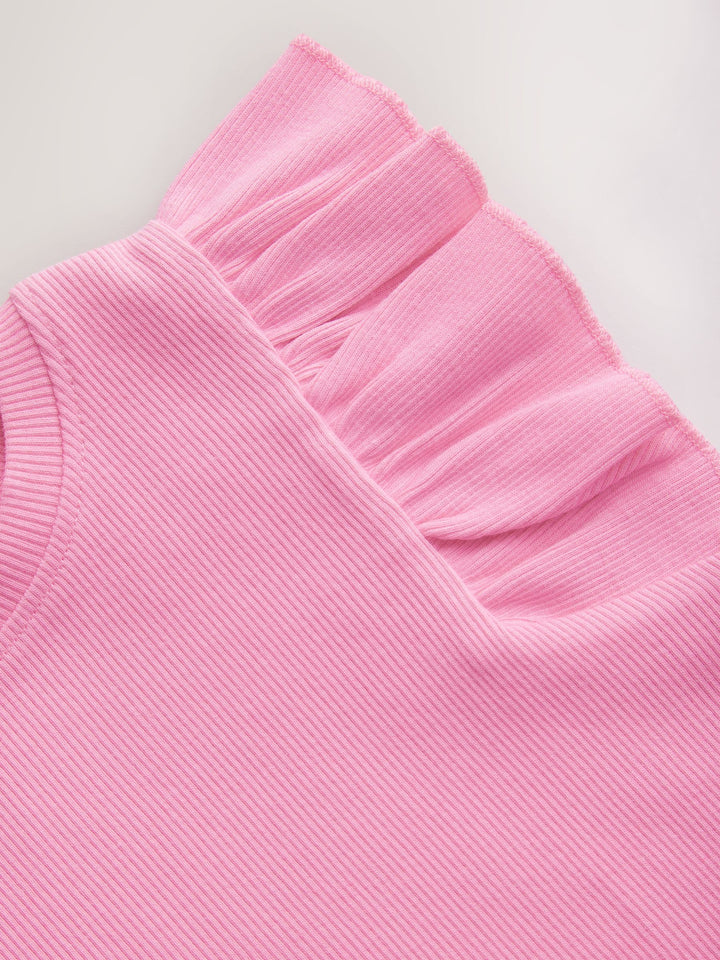 Pink Frill Shoulder Ribbed Vest (3mths-7yrs)