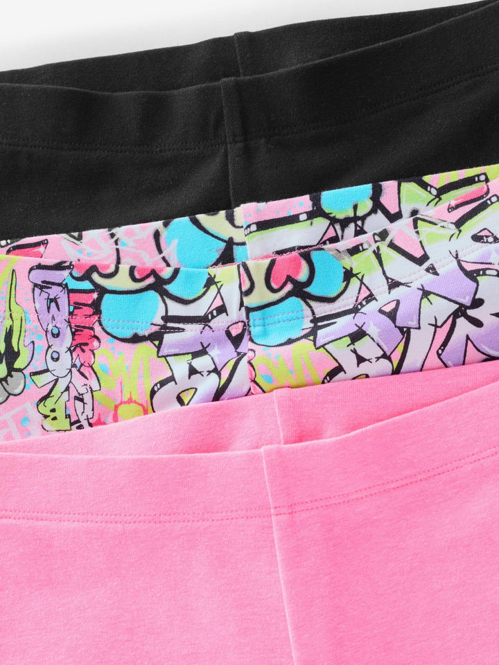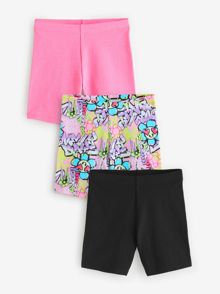 Pink/Graffiti/Black Cycle Shorts 3 Pack (3-16yrs)