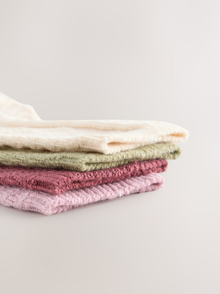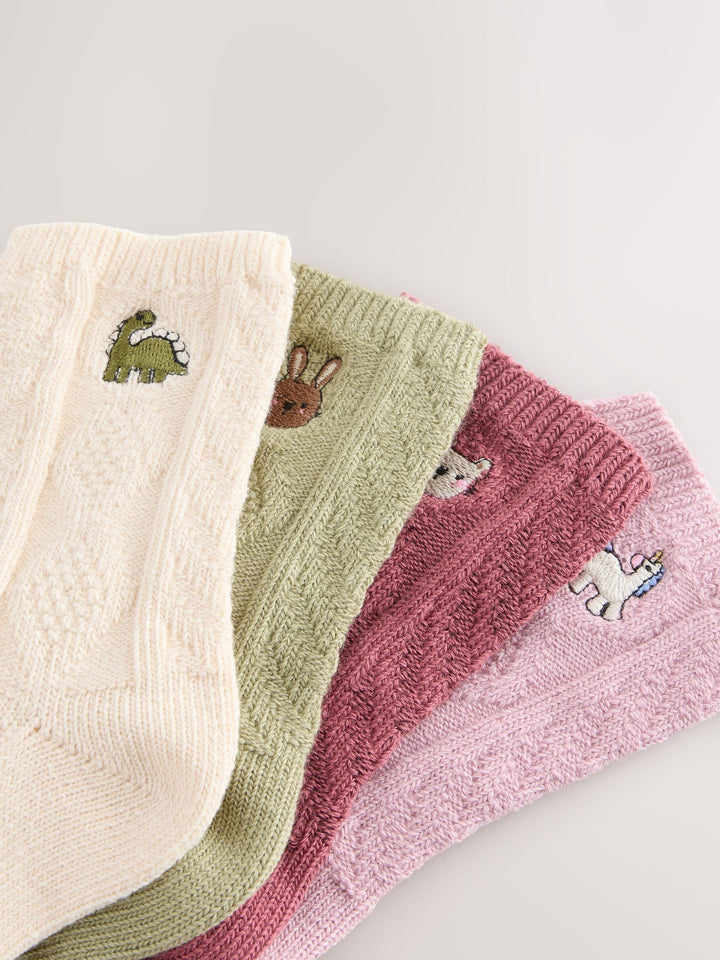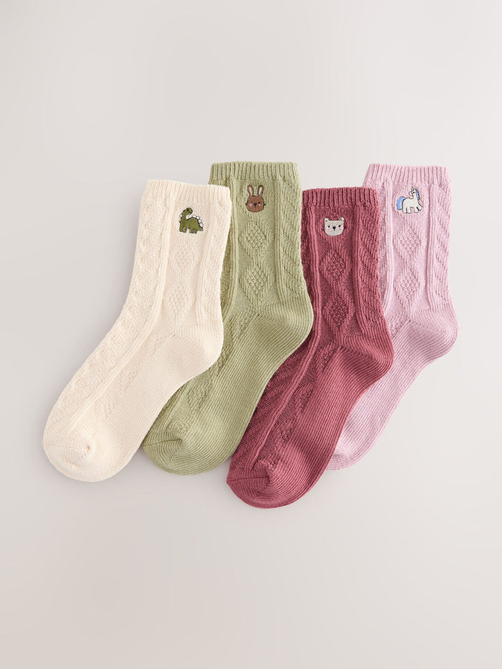 Pink, Green, Oatmeal and Plum Red Cotton Rich Cable Embroidered Ankle Socks 4 Pack