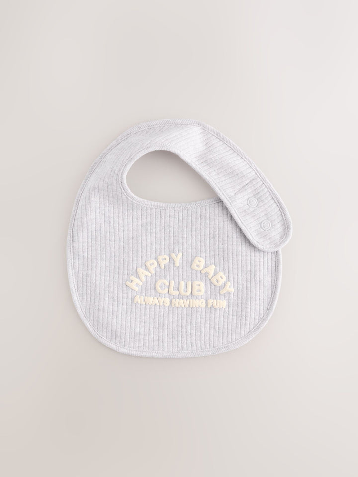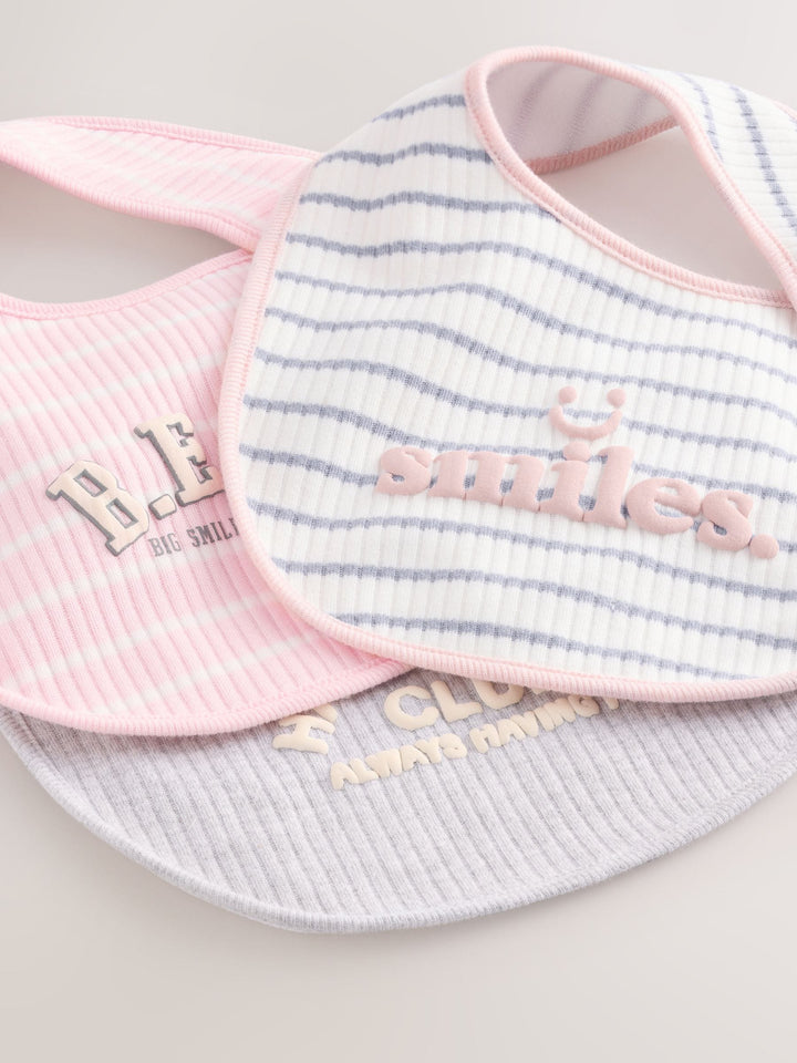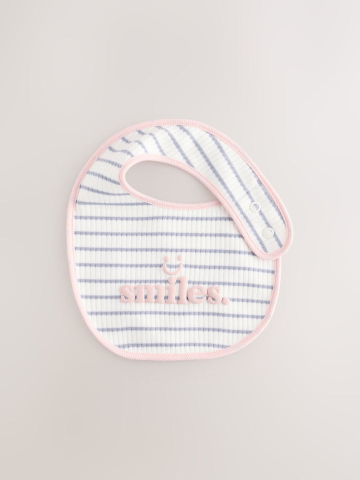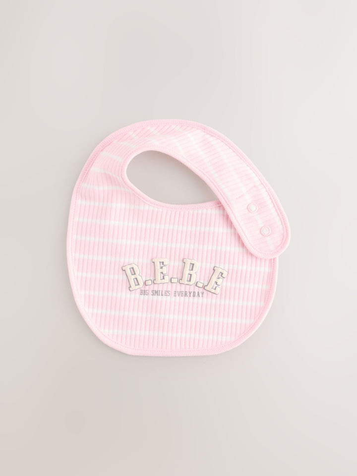 This 3-pack of baby bibs are made from soft cotton with a dribble proof layer for spills and messes, puff prints set against stripe and plain bases and a popper fastening for easy wear. 100% cotton main Popper fastening Dibble proof layer Machine washable. 3 x Bib Main 100% Cotton. Backing 68% Cotton, 19% Recycled polyester, 13% Polyurethane. Country of Origin: India Warning: Keep away from fire and flames.