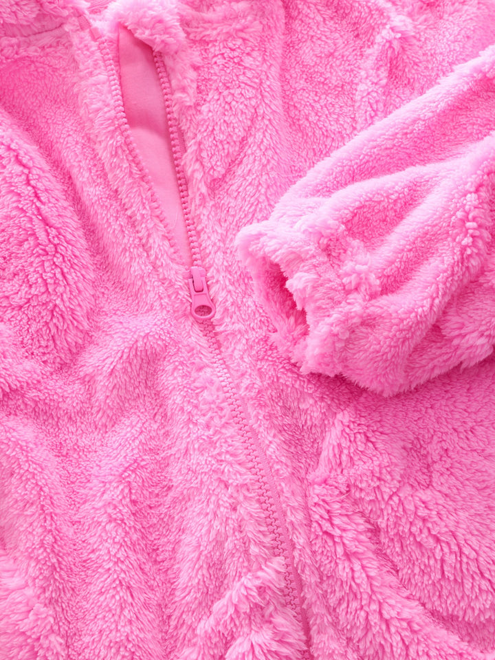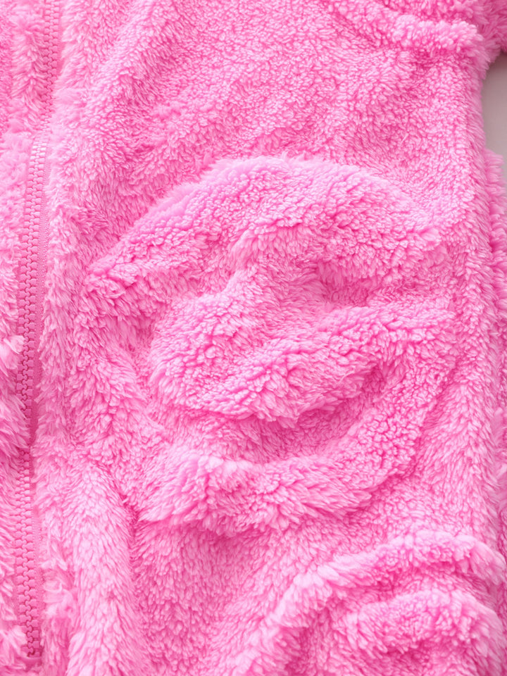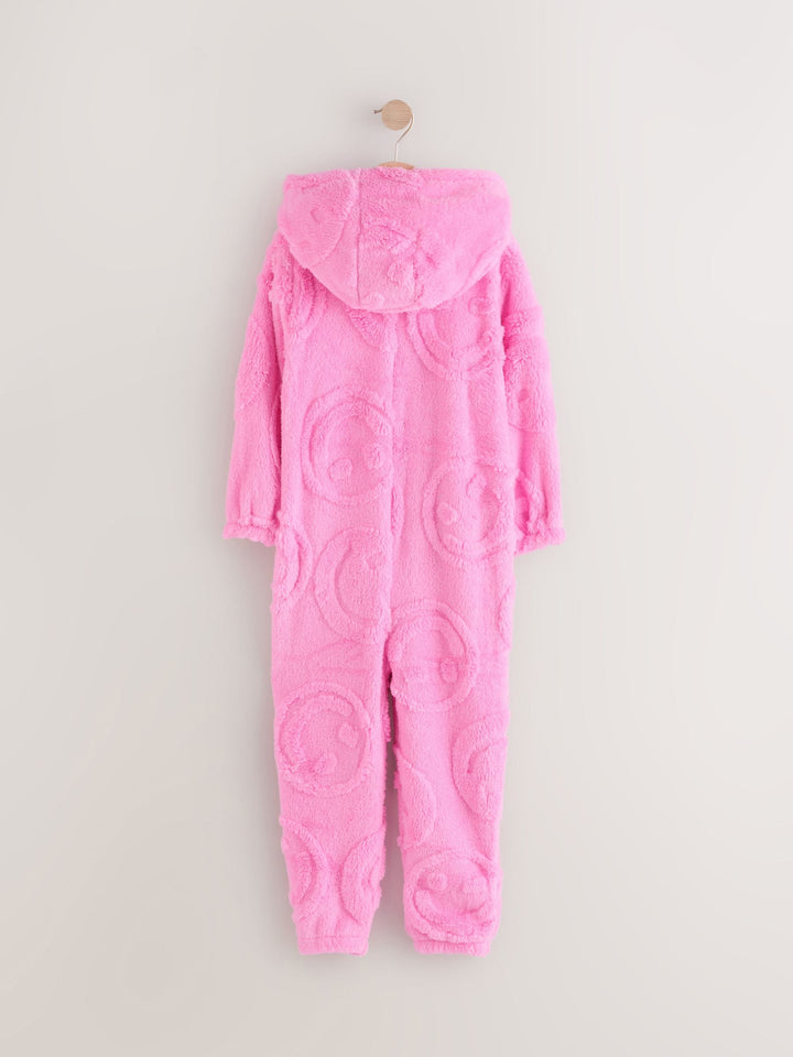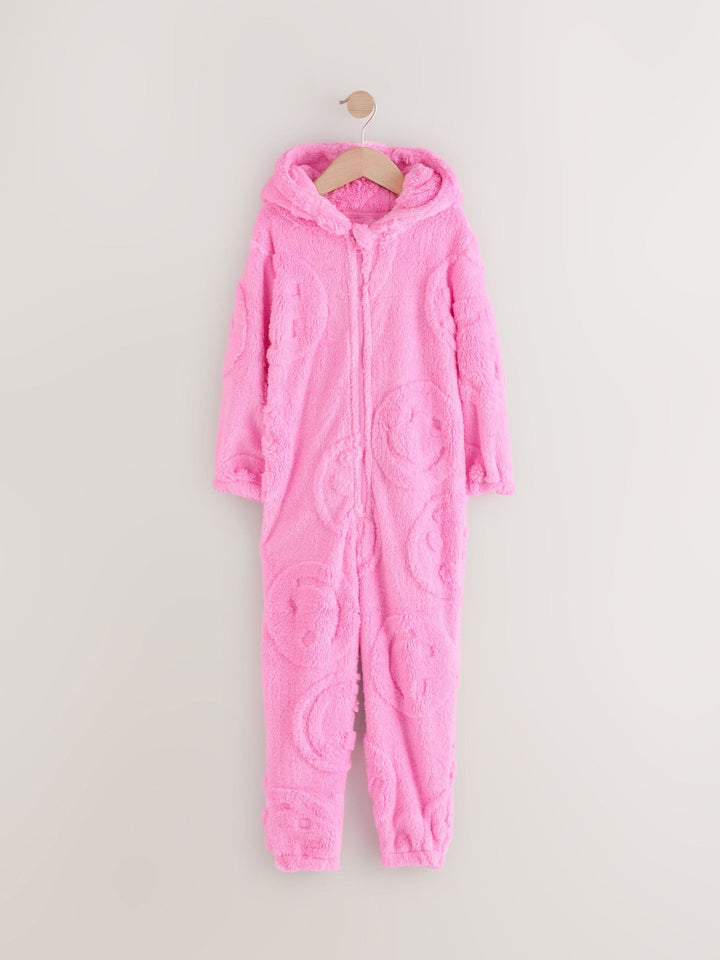 This cute and cosy all-in-one is made from a soft fleece fabric with a zippered fastening, a set-in hood and elasticated cuffs to the sleeves and ankles, finished in a choice of different designs. Regular fit Zip fastening Soft touch fleece Set-in hood Elasticated sleeve and ankle cuffs Machine washable. 75% Recycled polyester, 25% Polyester. Country of Origin: China Warning: Keep away from fire and flames.